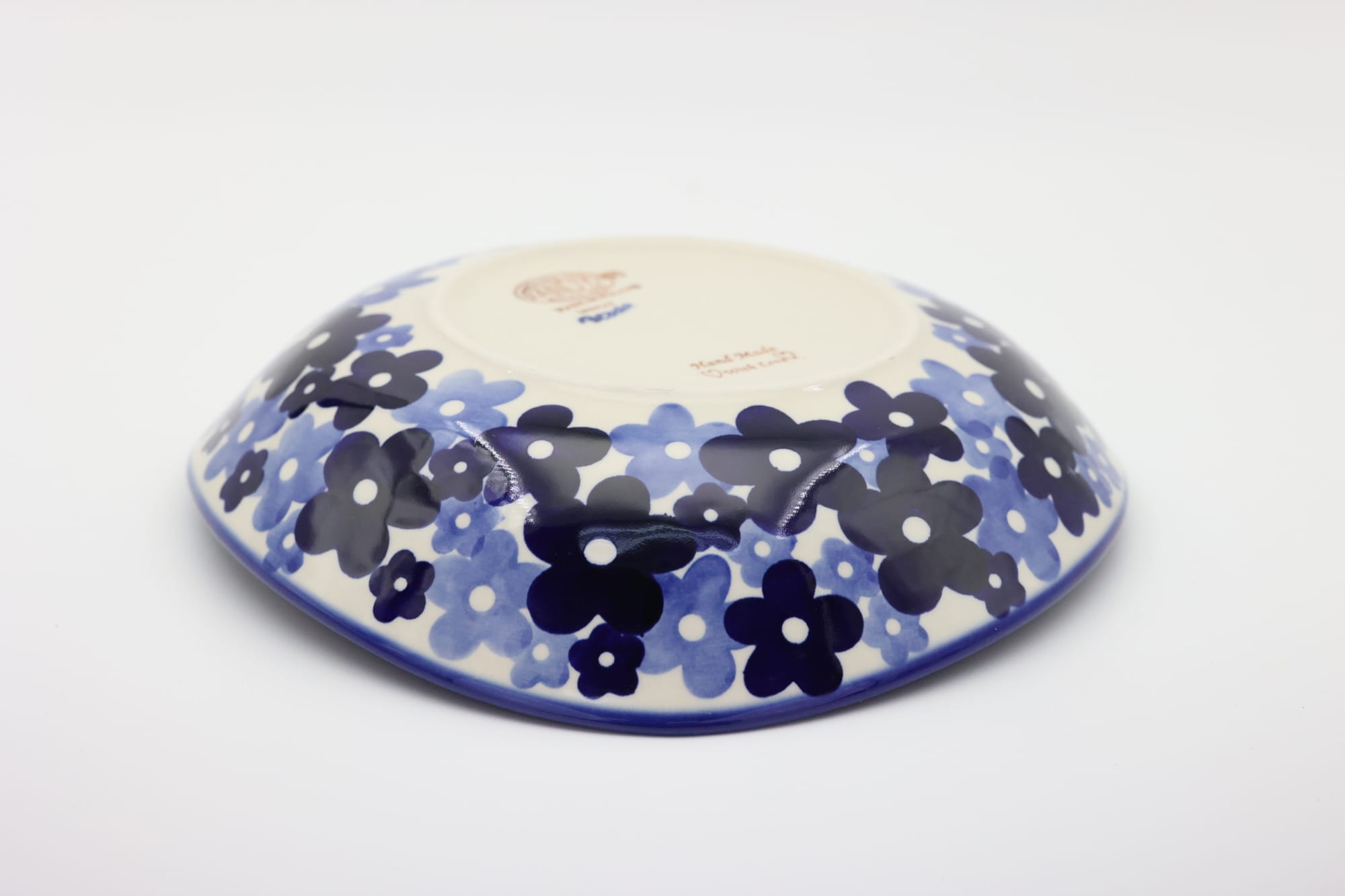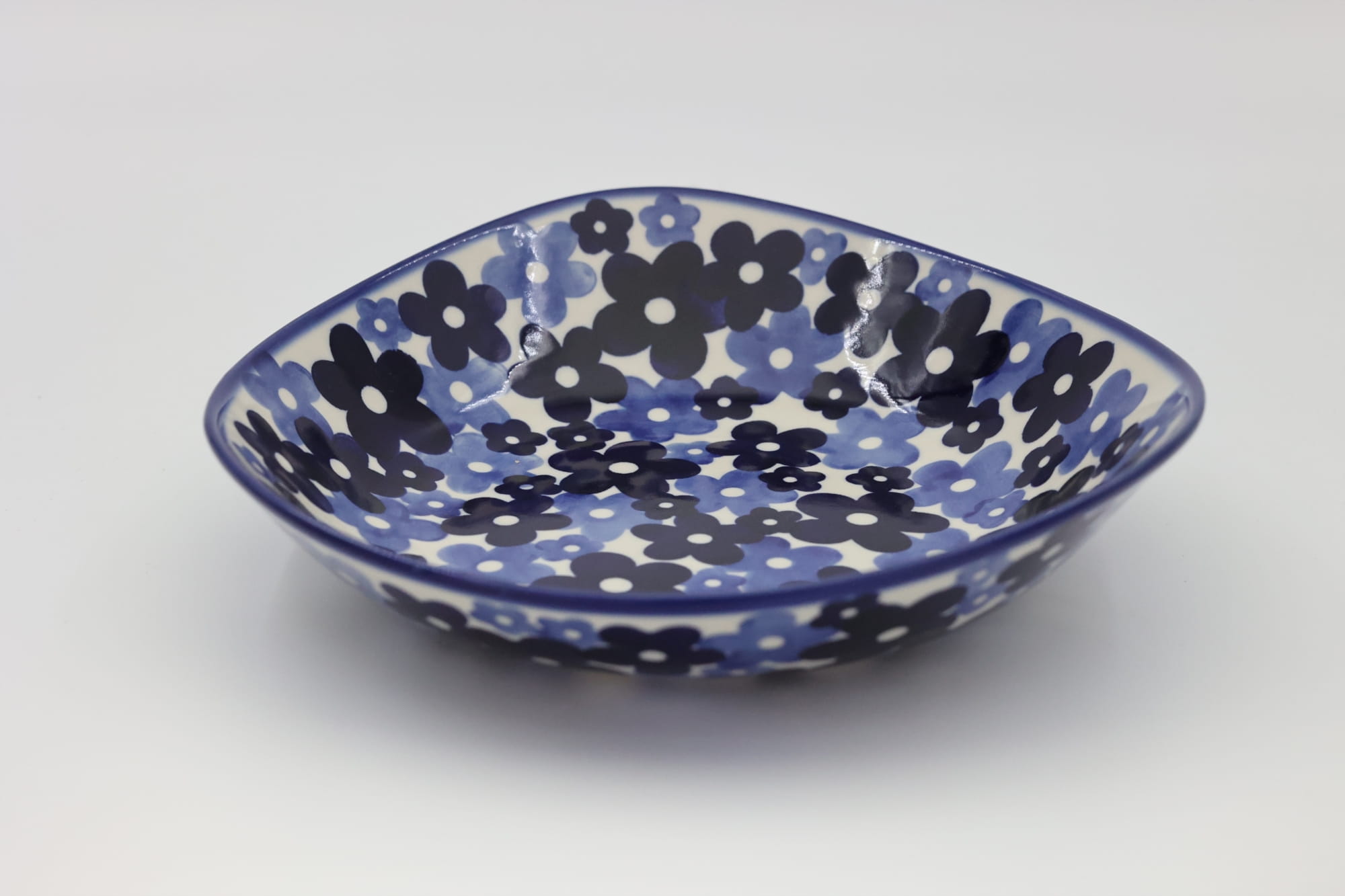 An original product of Bolesławiec ceramics - the Nina ceramic bowl, 28 cm wide and 1200 ml capacity. Hand-decorated stoneware bowl of irregular shape, perfect for serving and storing food. Let your prepared dish be served beautifully and taste exquisitely thanks to the artistic Bolesławiec pottery dishes from the family manufactory, CERAMIKA ANDY, hand-decorated under glaze.