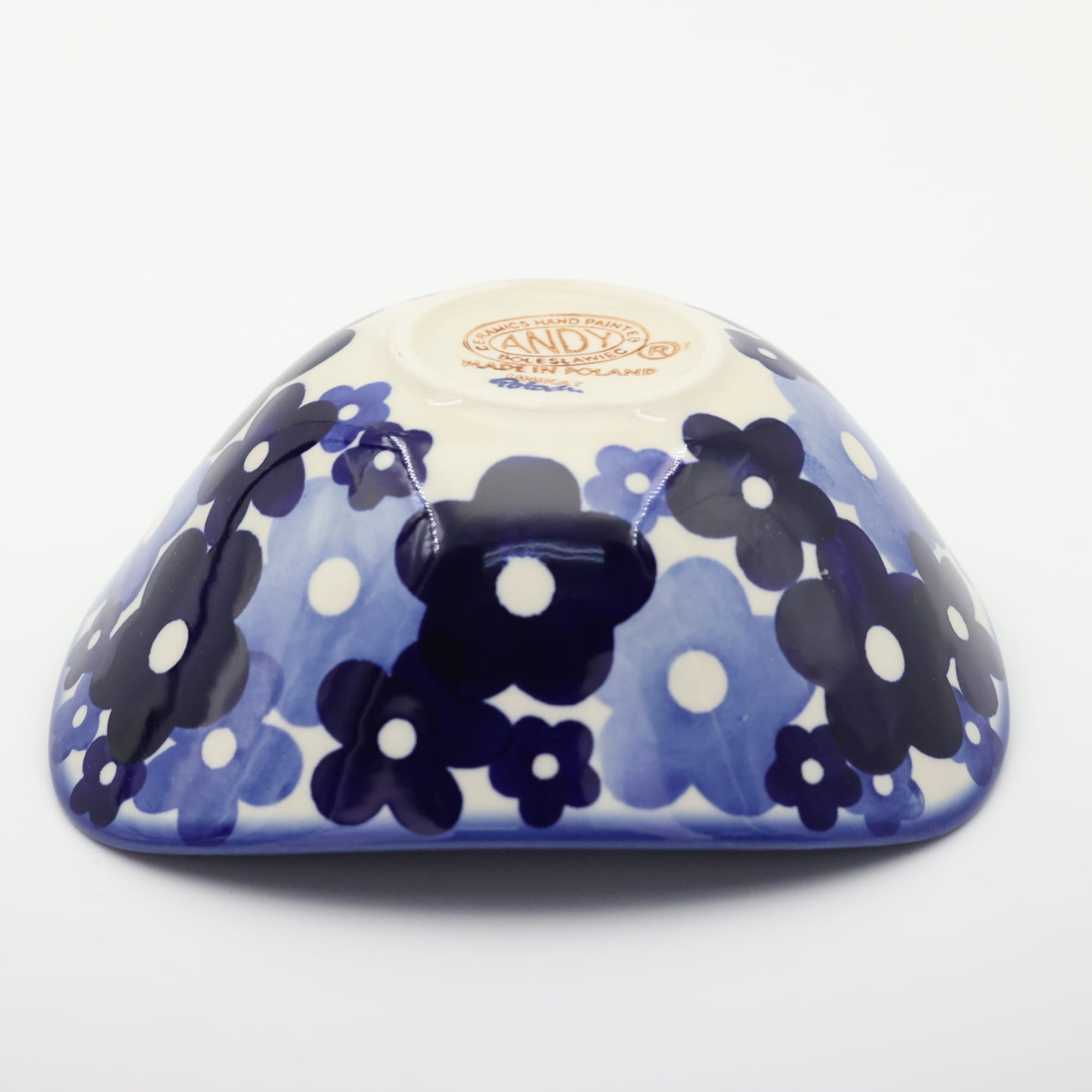 An original product of Bolesławiec ceramics - the Nina ceramic bowl small. Hand-decorated stoneware bowl of irregular shape, perfect for serving and storing food. Let your prepared dish be served beautifully and taste exquisitely thanks to the artistic Bolesławiec pottery dishes from the family manufactory, CERAMIKA ANDY, hand-decorated under glaze.