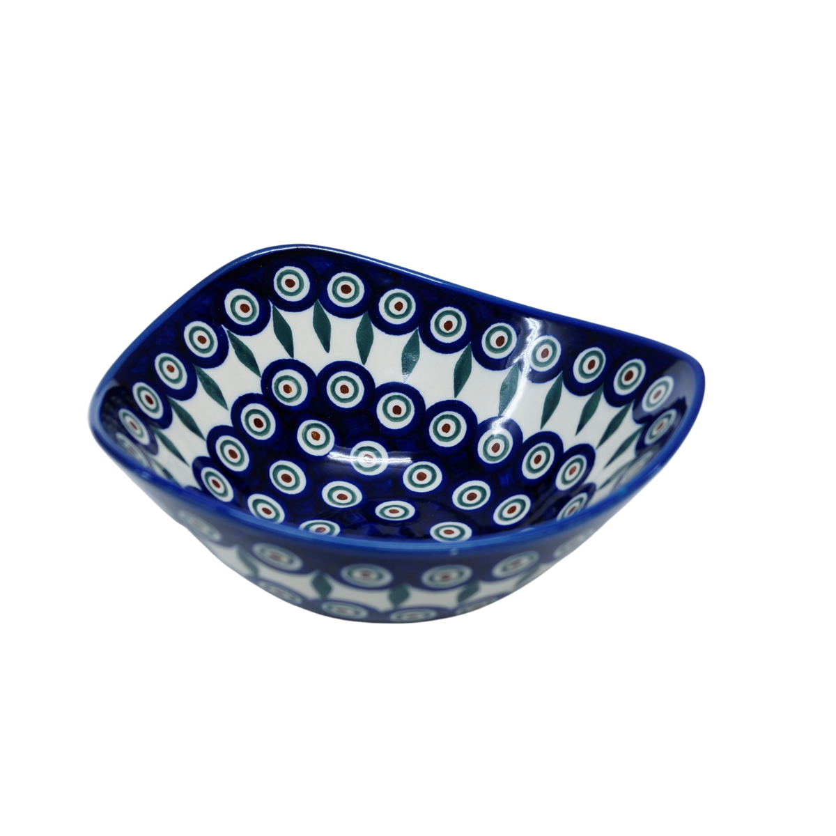 An original product of Bolesławiec ceramics - the Nina ceramic bowl small. Hand-decorated stoneware bowl of irregular shape, perfect for serving and storing food. Let your prepared dish be served beautifully and taste exquisitely thanks to the artistic Bolesławiec pottery dishes from the family manufactory, CERAMIKA ANDY, hand-decorated under glaze.