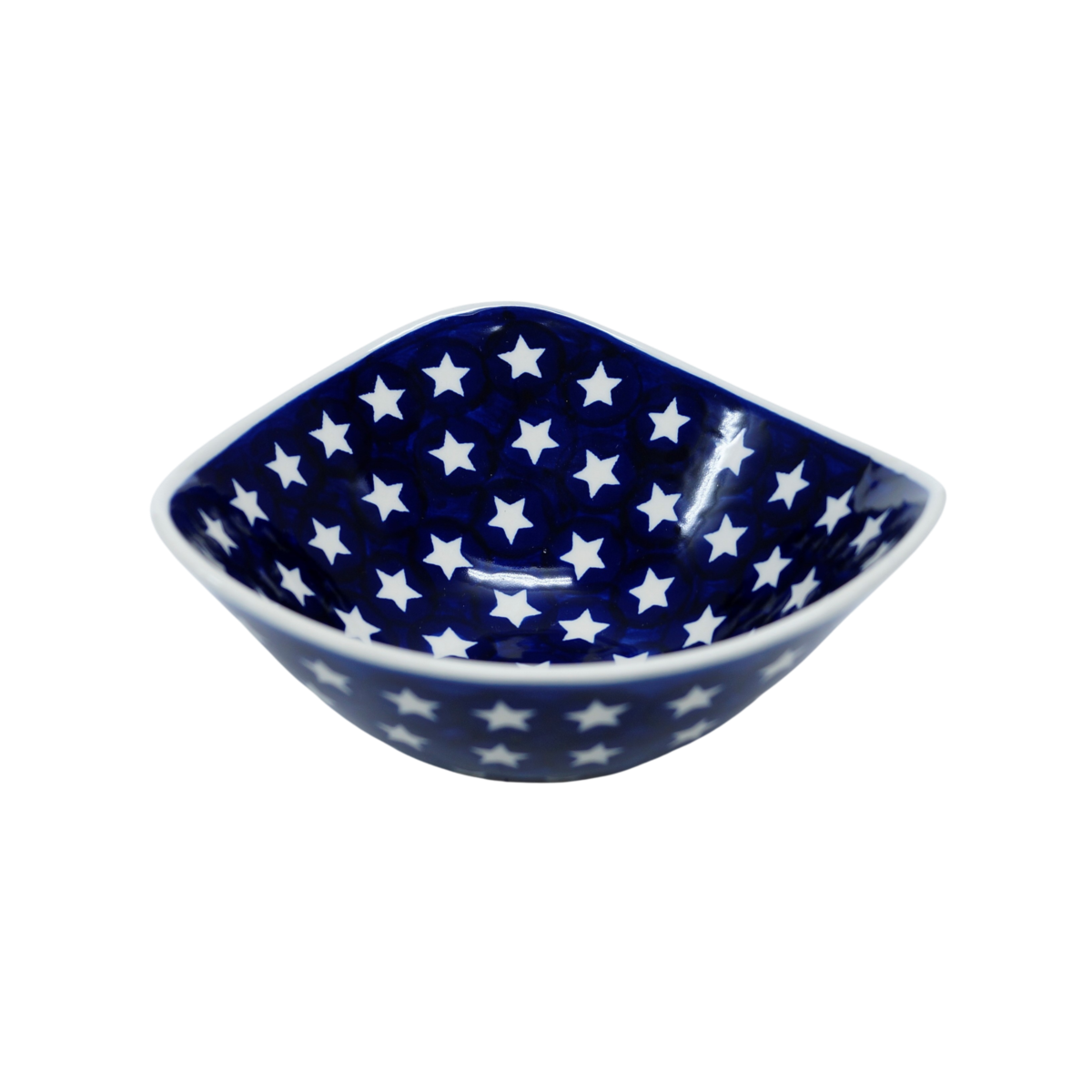 An original product of Bolesławiec ceramics - the Nina ceramic bowl small. Hand-decorated stoneware bowl of irregular shape, perfect for serving and storing food. Let your prepared dish be served beautifully and taste exquisitely thanks to the artistic Bolesławiec pottery dishes from the family manufactory, CERAMIKA ANDY, hand-decorated under glaze.