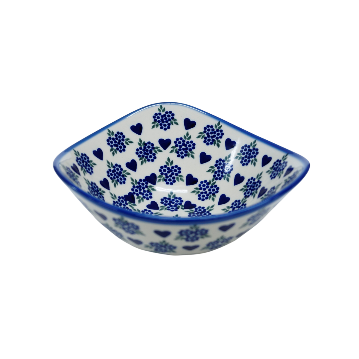 An original product of Bolesławiec ceramics - the Nina ceramic bowl small. Hand-decorated stoneware bowl of irregular shape, perfect for serving and storing food. Let your prepared dish be served beautifully and taste exquisitely thanks to the artistic Bolesławiec pottery dishes from the family manufactory, CERAMIKA ANDY, hand-decorated under glaze.