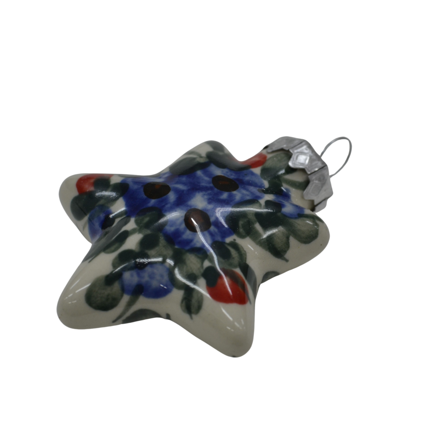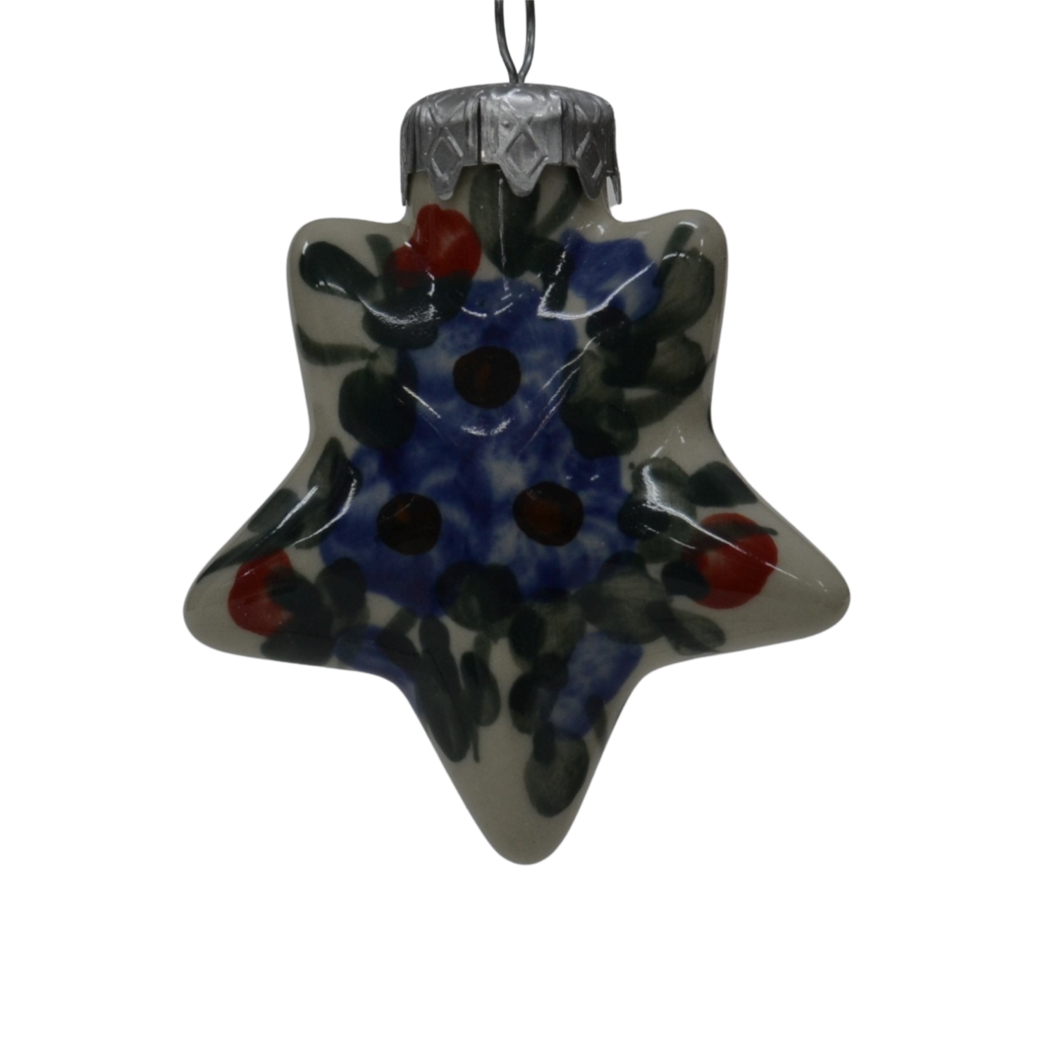 Original ceramic christmas ornament, hand-painted in a family factory of Bolesławiec ceramics, with traditional stamp and flower patterns.