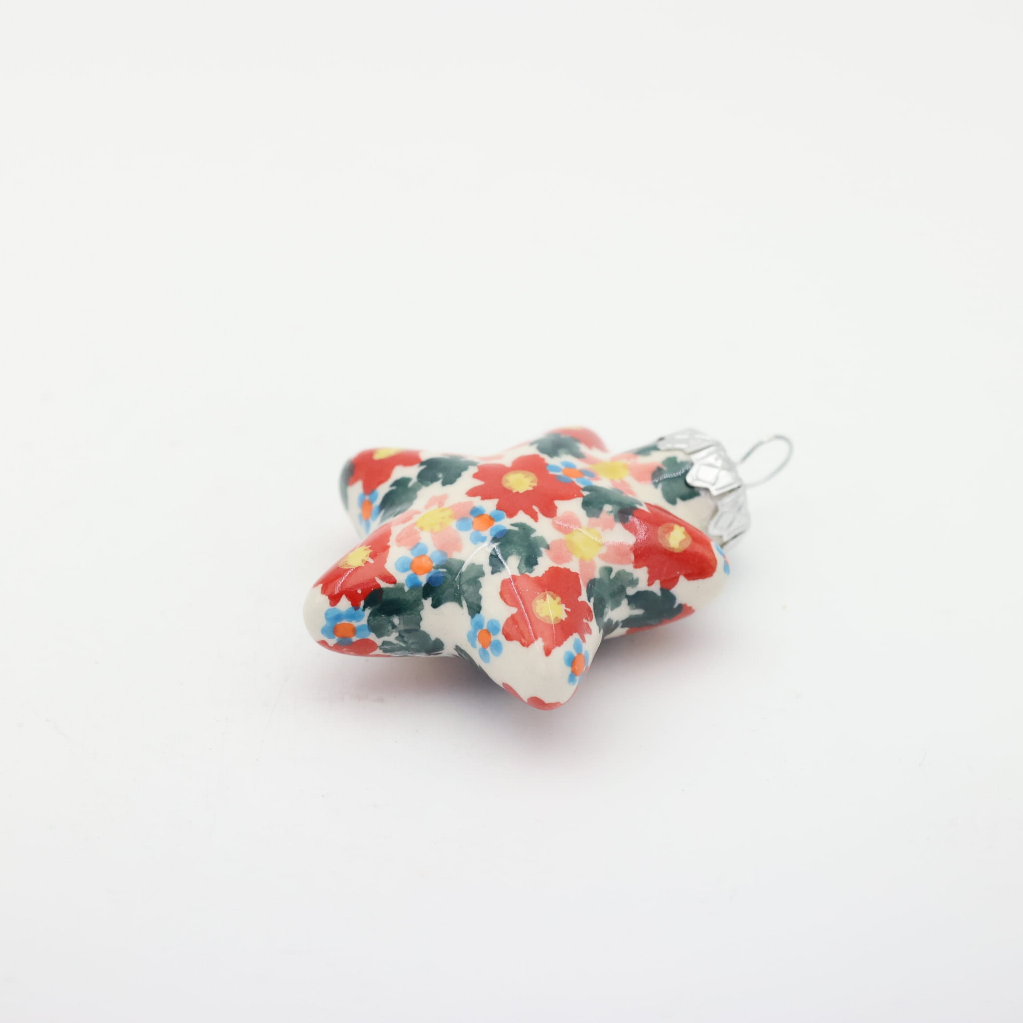 Original ceramic christmas ornament, hand-painted in a family factory of Bolesławiec ceramics, with traditional stamp and flower patterns.