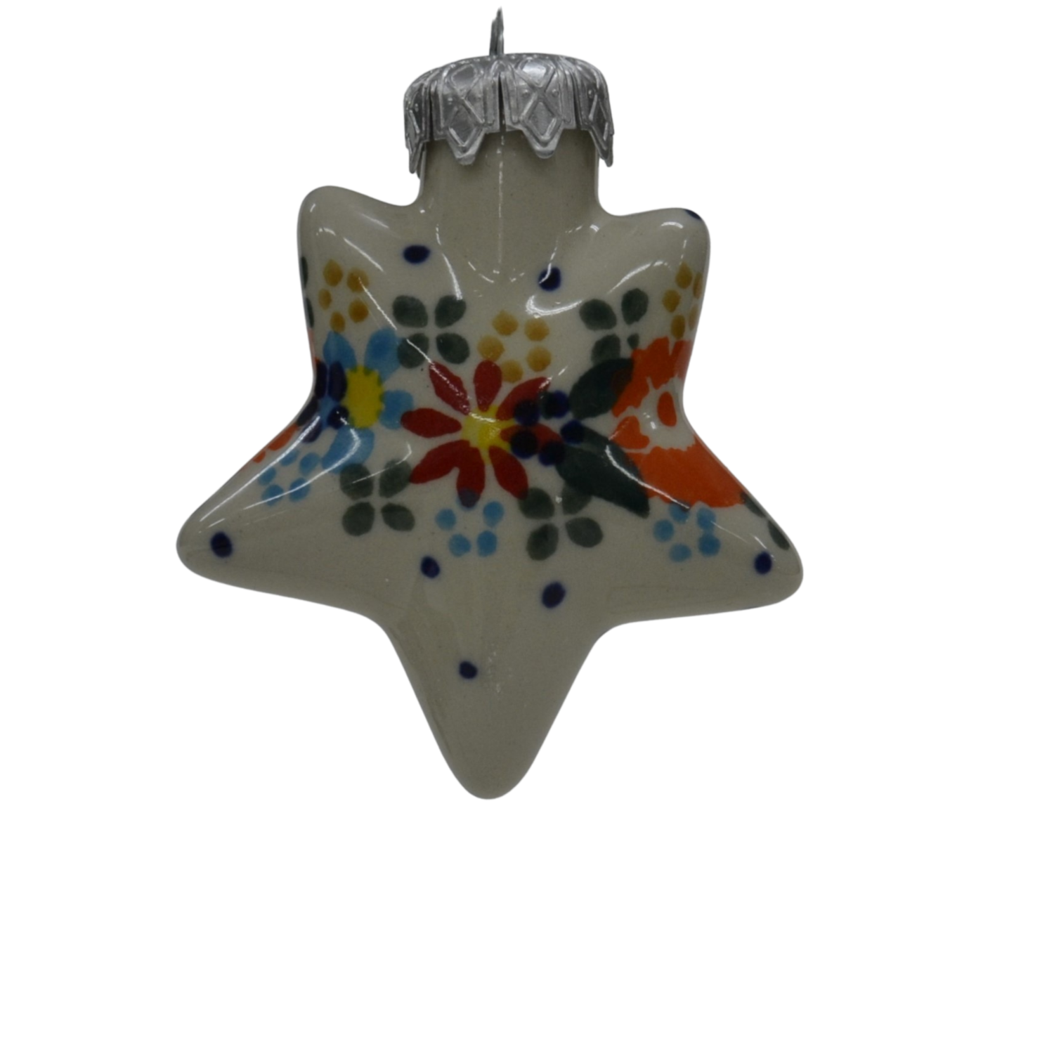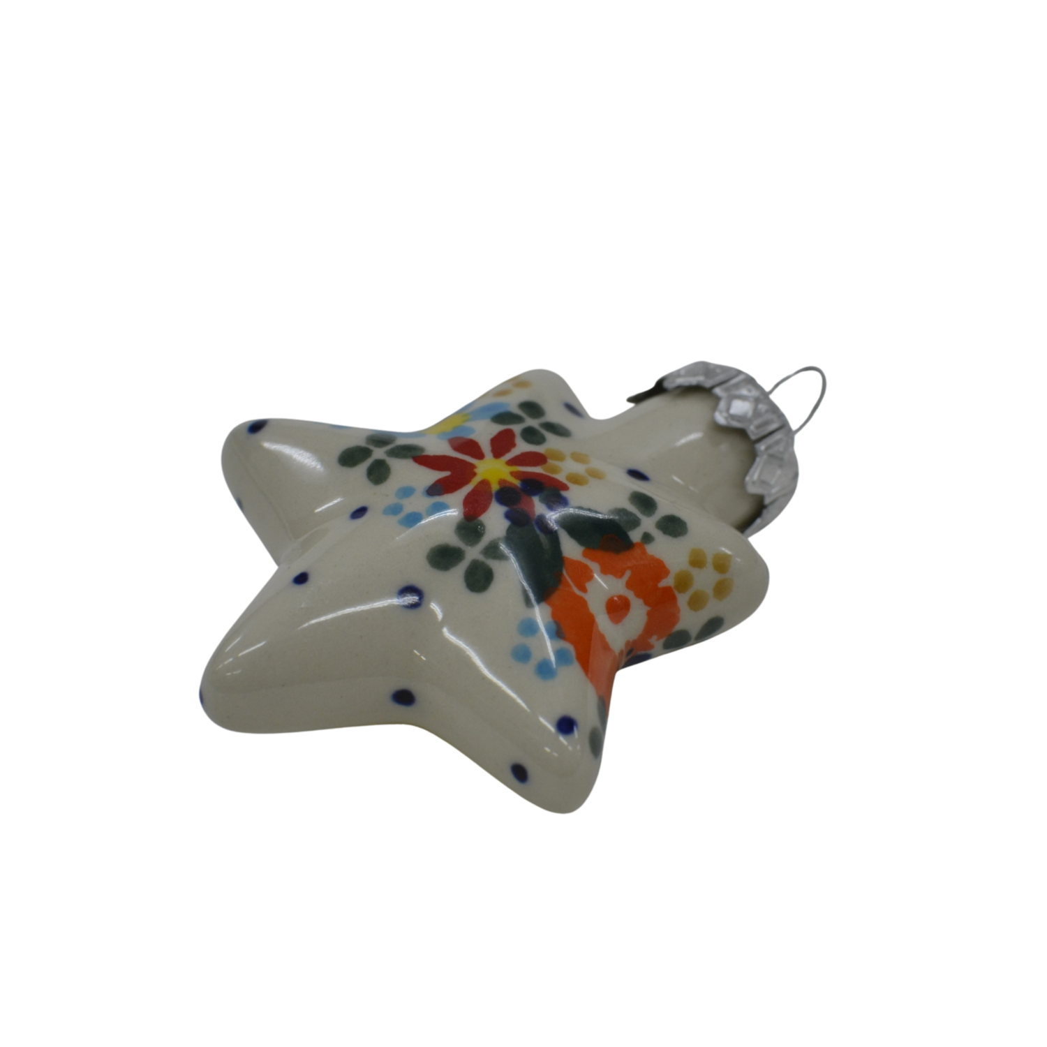 Original ceramic christmas ornament, hand-painted in a family factory of Bolesławiec ceramics, with traditional stamp and flower patterns.