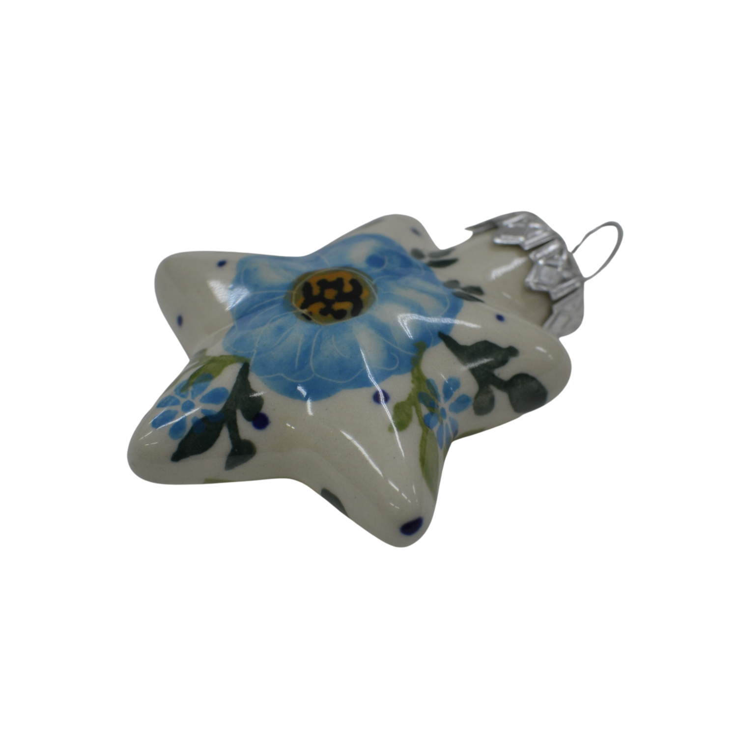 Original ceramic christmas ornament, hand-painted in a family factory of Bolesławiec ceramics, with traditional stamp and flower patterns.