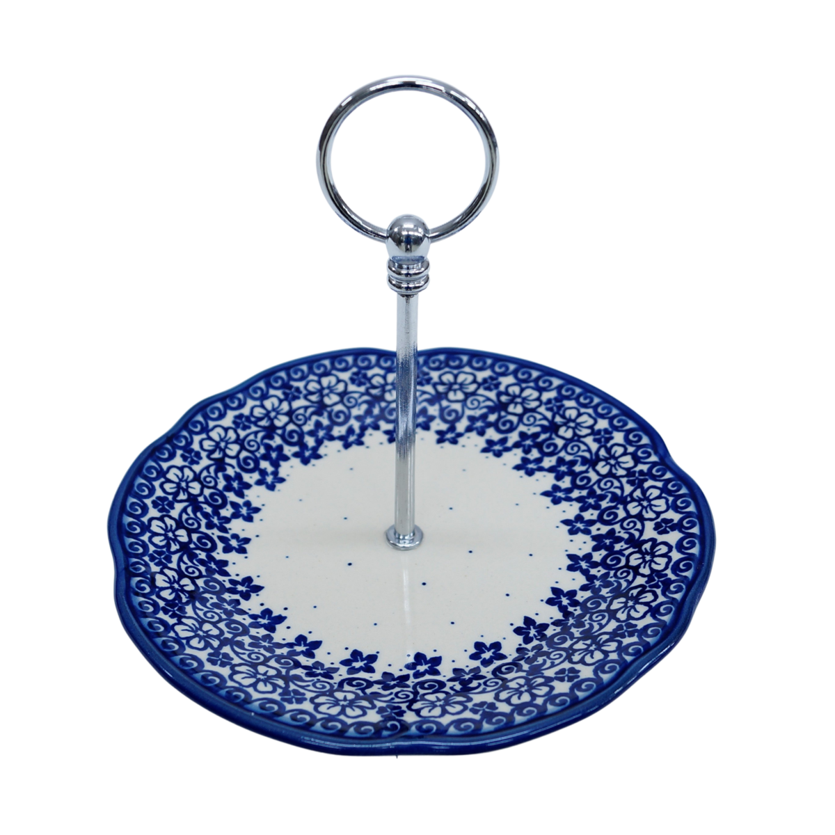 A cookie plate will enrich the artistic table setting and will beautifully display the sweetest dessert. The cake stand is easy to carry and set in any chosen place thanks to the stainless steel handle. Cookies, desserts, fruit, cookies or cakes served on a Bolesławiec dish will delight your guests.