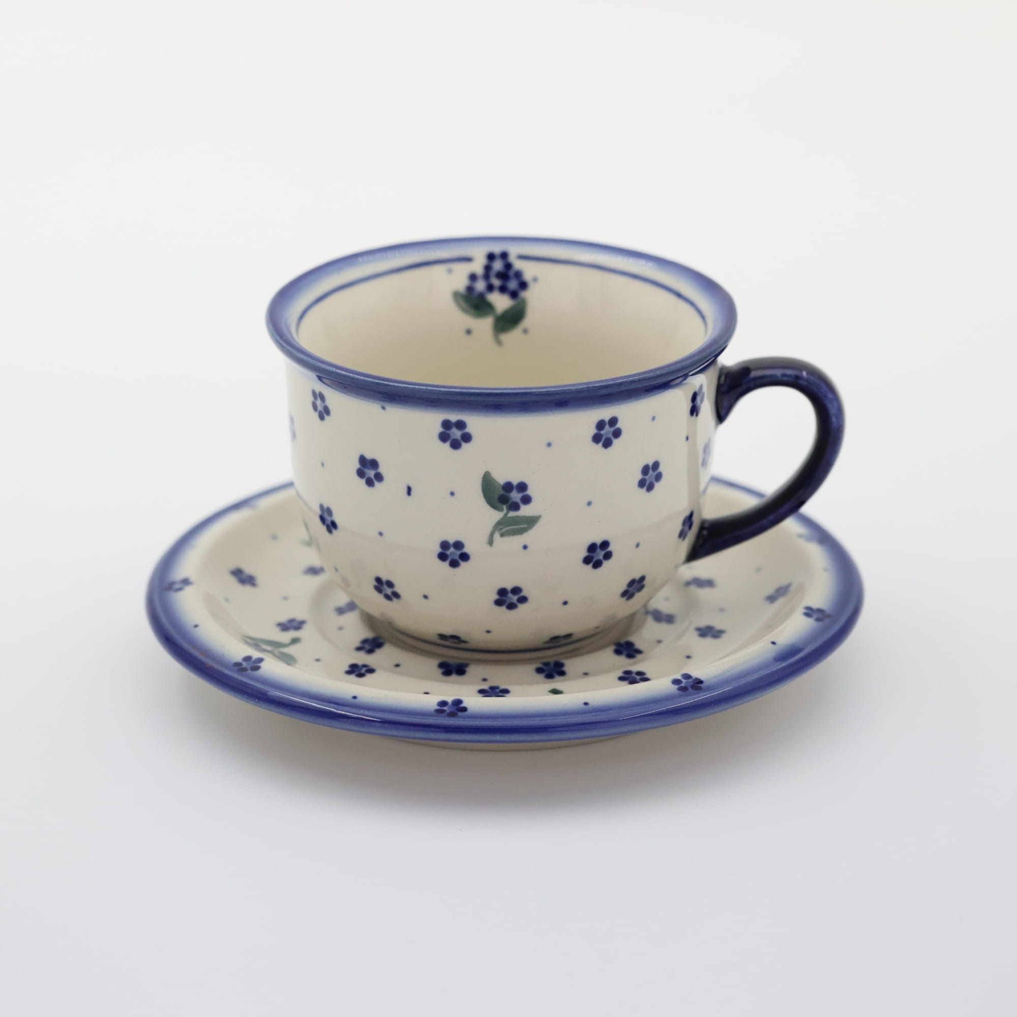 A beautiful ceramic cup with a capacity of 0.3 l sold in a set with a saucer, decorated ceramic cup with beautiful patterns of Bolesławiec stoneware.