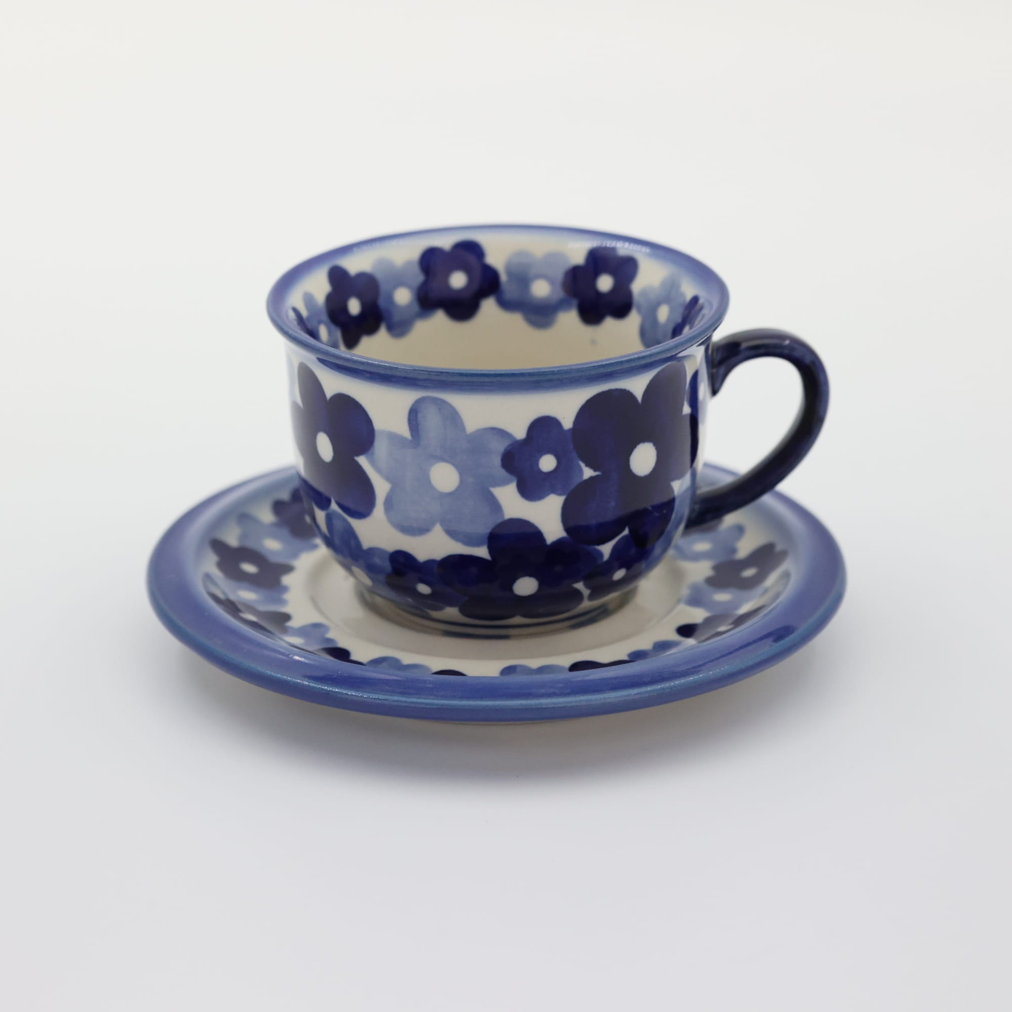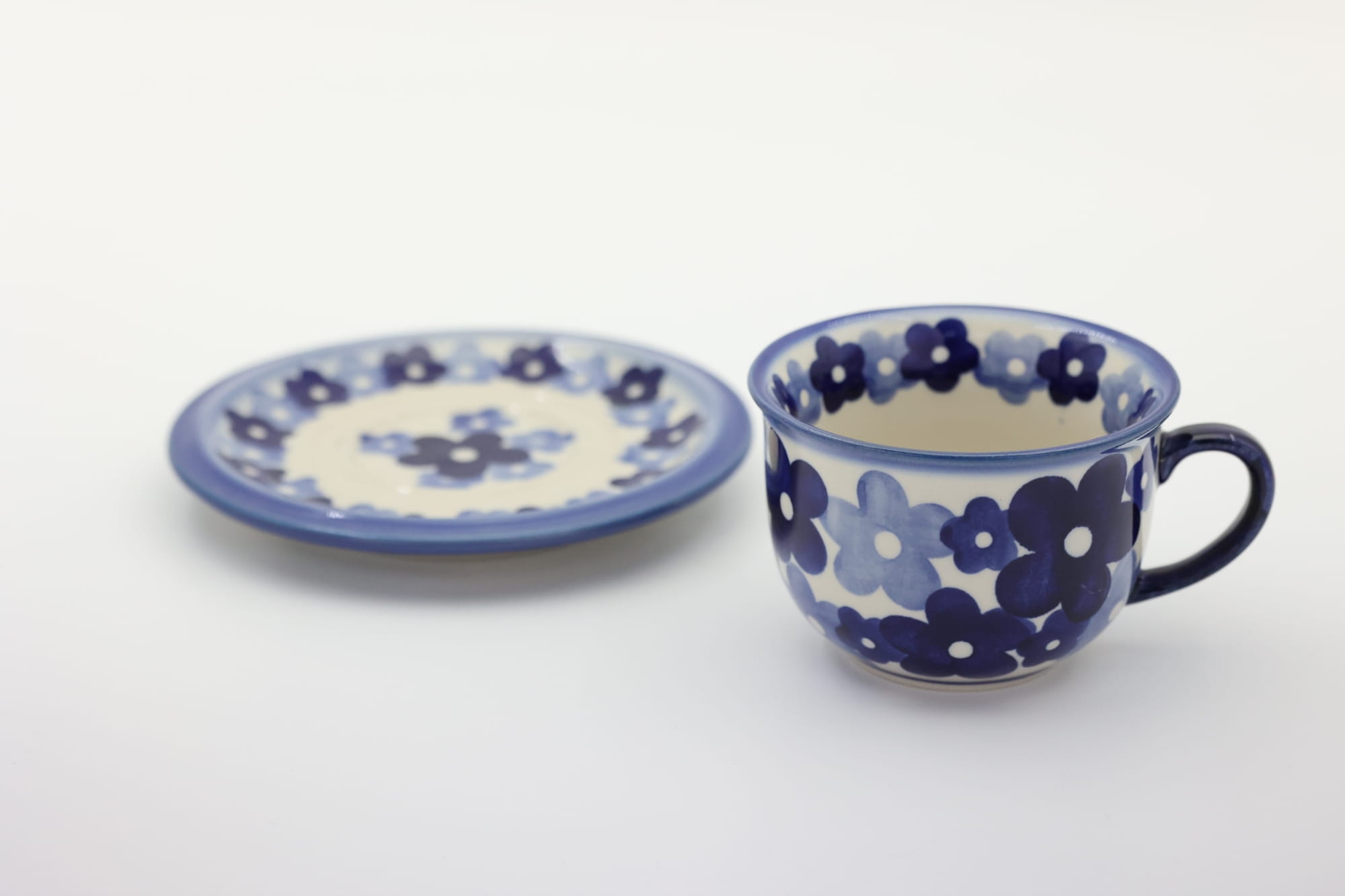 A beautiful ceramic cup with a capacity of 0.3 l sold in a set with a saucer, decorated ceramic cup with beautiful patterns of Bolesławiec stoneware.