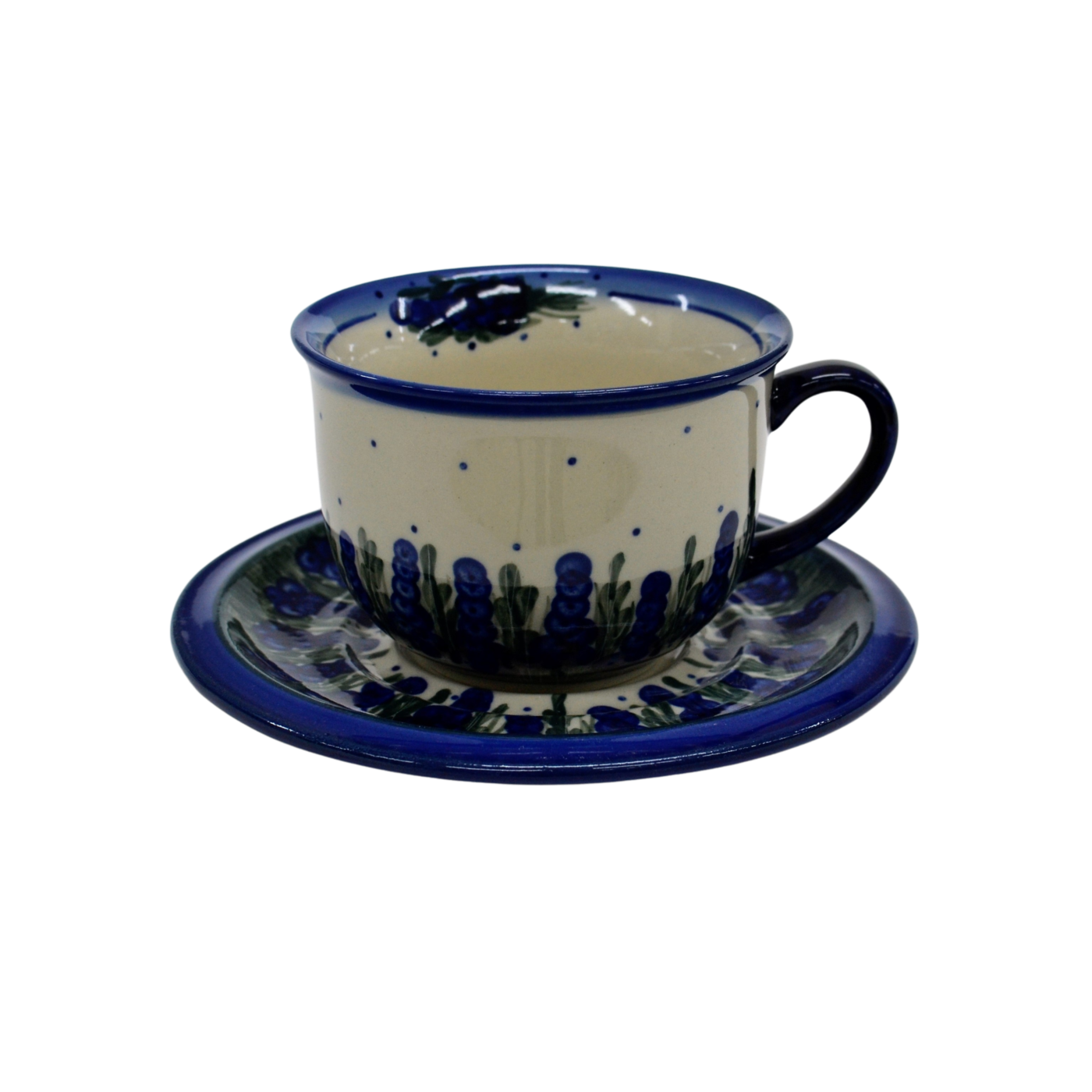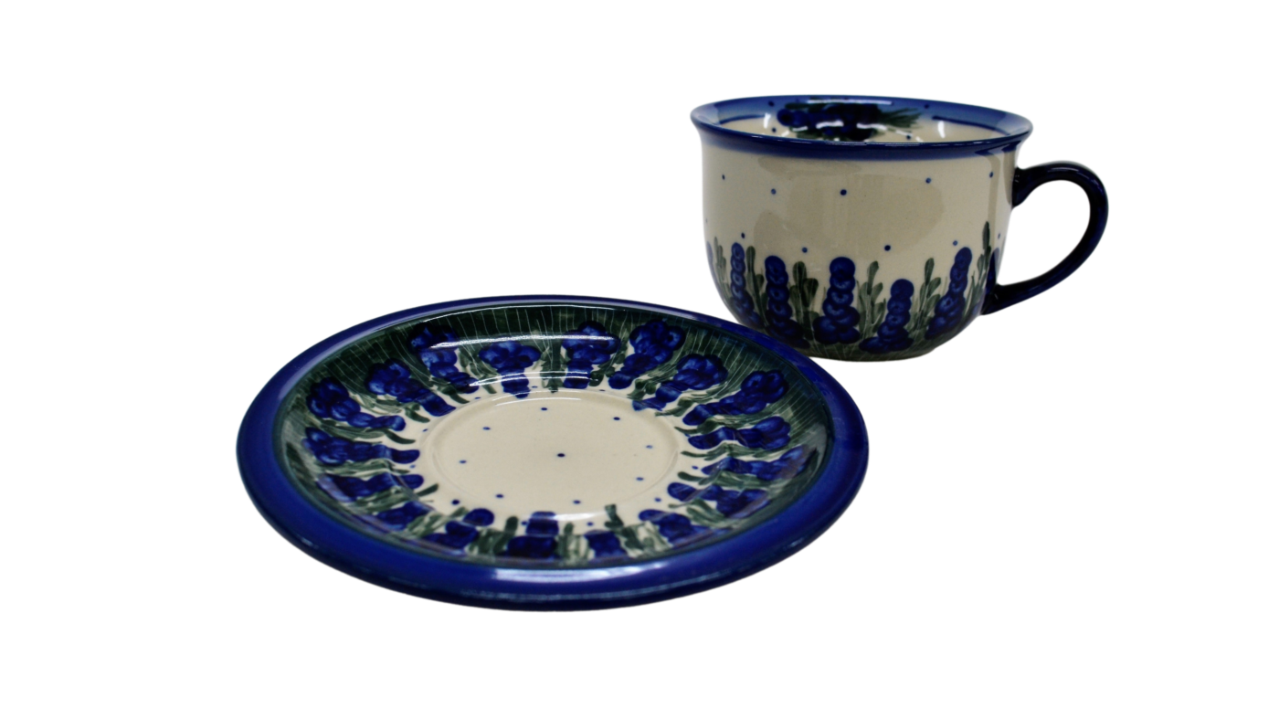 A beautiful ceramic cup with a capacity of 0.3 l sold in a set with a saucer, decorated ceramic cup with beautiful patterns of Bolesławiec stoneware.