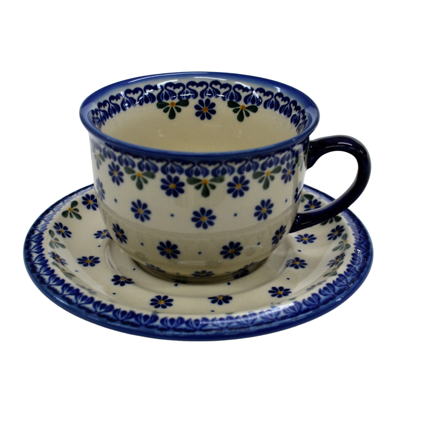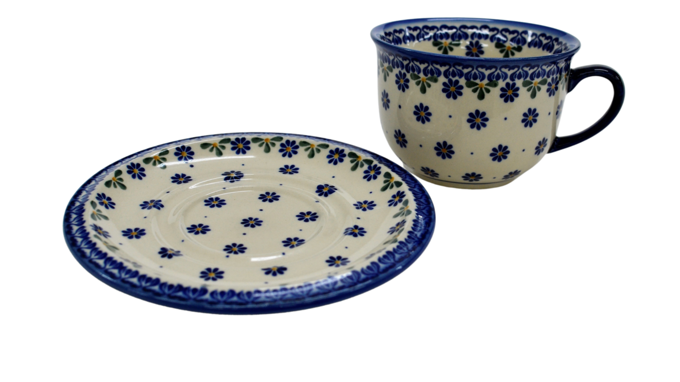 A beautiful ceramic cup with a capacity of 0.3 l sold in a set with a saucer, decorated ceramic cup with beautiful patterns of Bolesławiec stoneware.