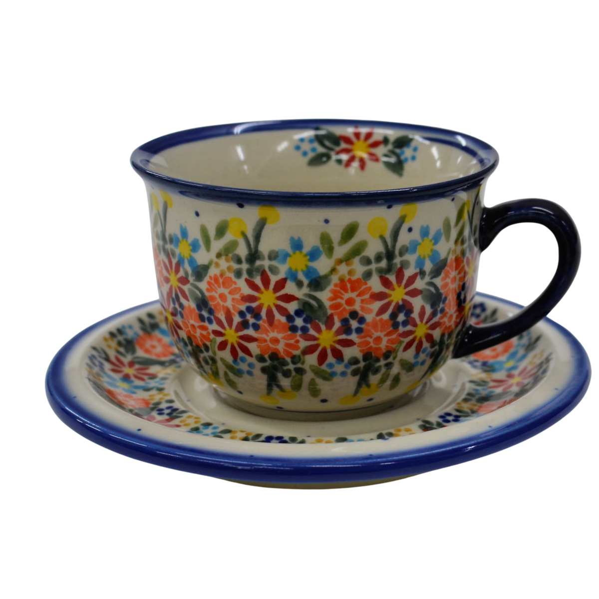 A beautiful ceramic cup with a capacity of 0.3 l sold in a set with a saucer, decorated ceramic cup with beautiful patterns of Bolesławiec stoneware.