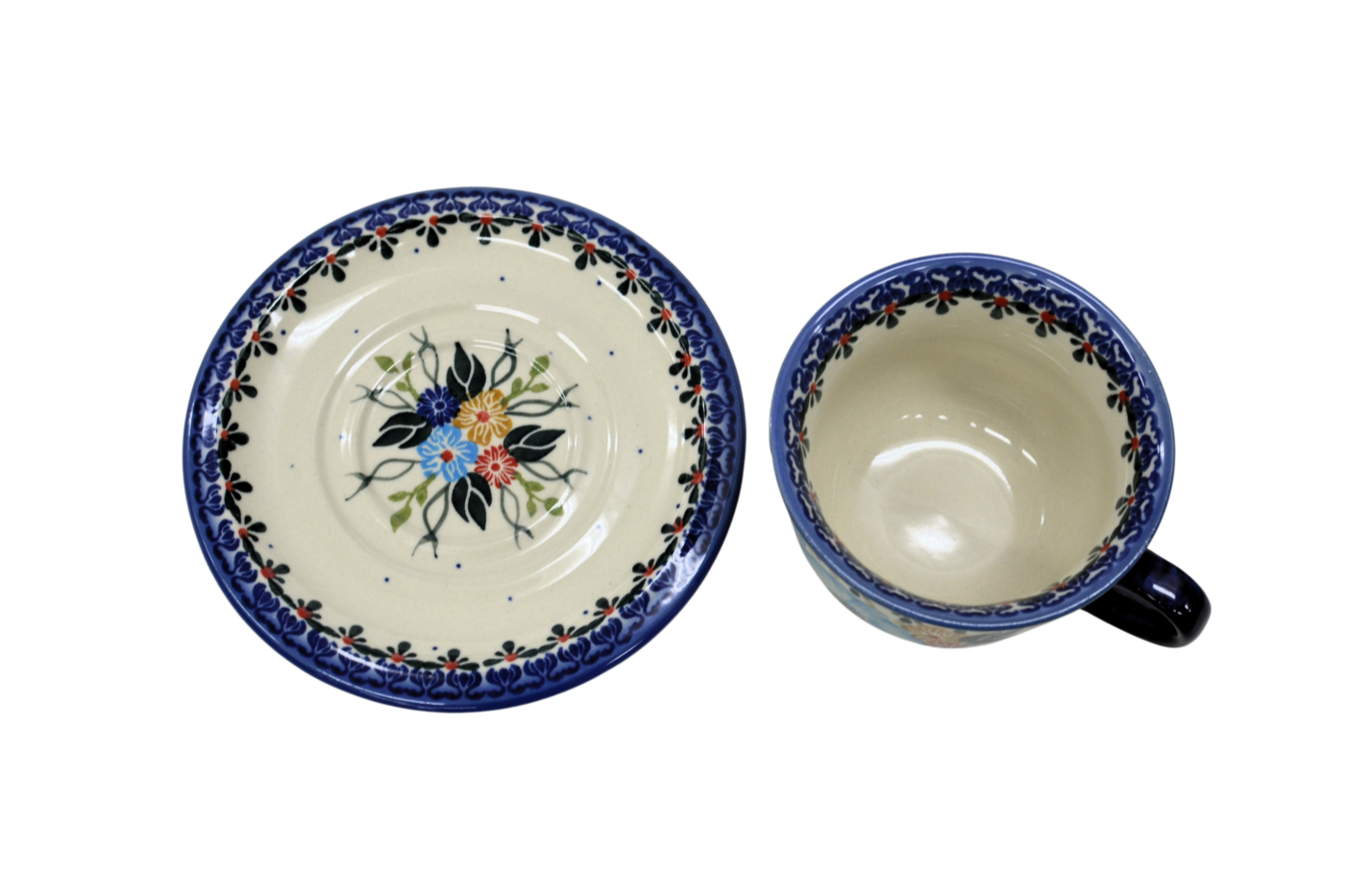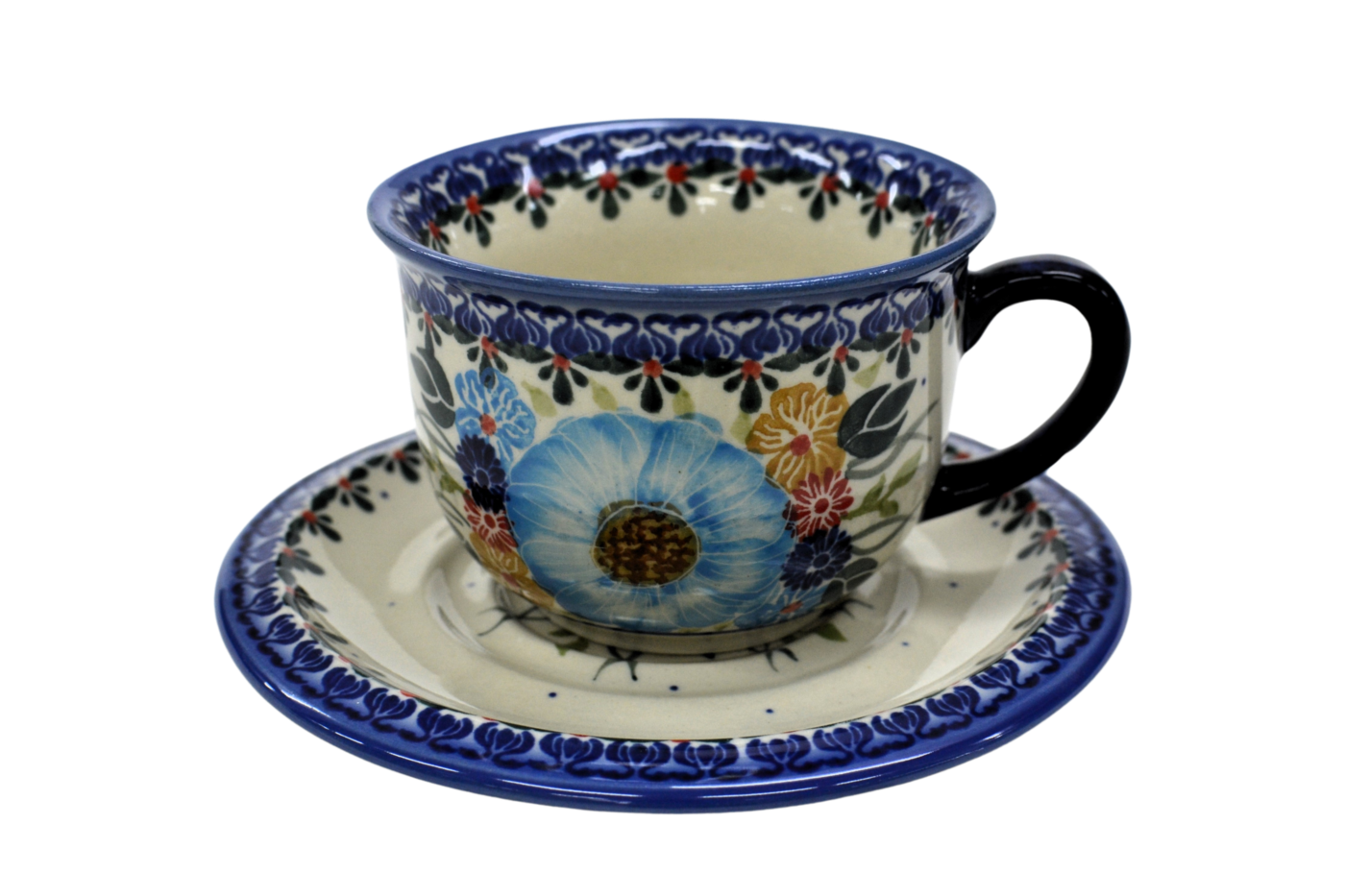 A beautiful ceramic cup with a capacity of 0.3 l sold in a set with a saucer, decorated ceramic cup with beautiful patterns of Bolesławiec stoneware.