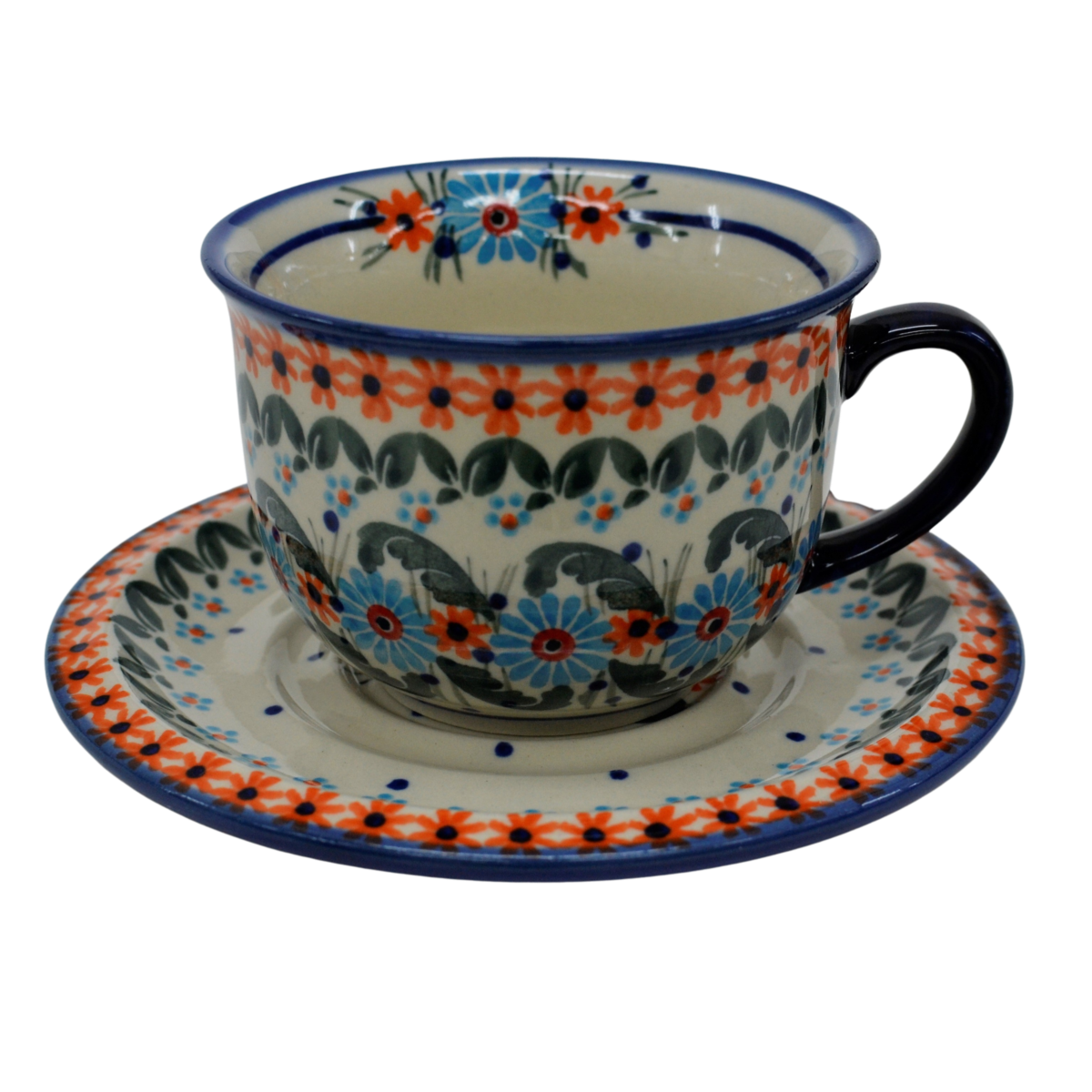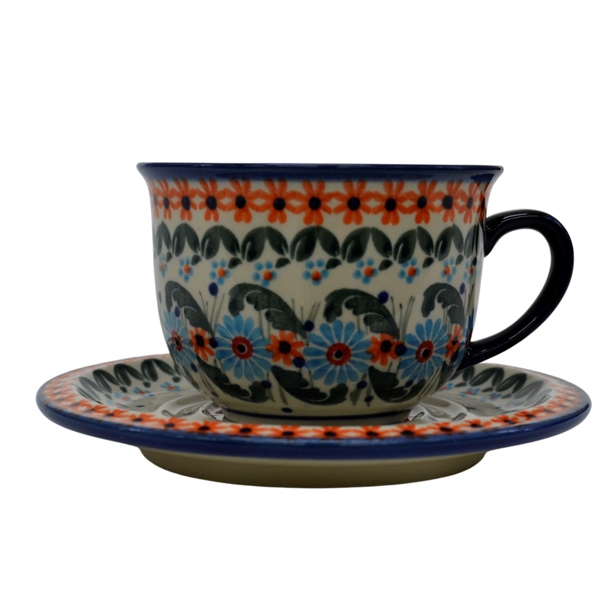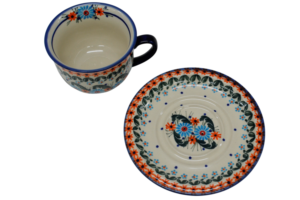 A beautiful ceramic cup with a capacity of 0.3 l sold in a set with a saucer, decorated ceramic cup with beautiful patterns of Bolesławiec stoneware.