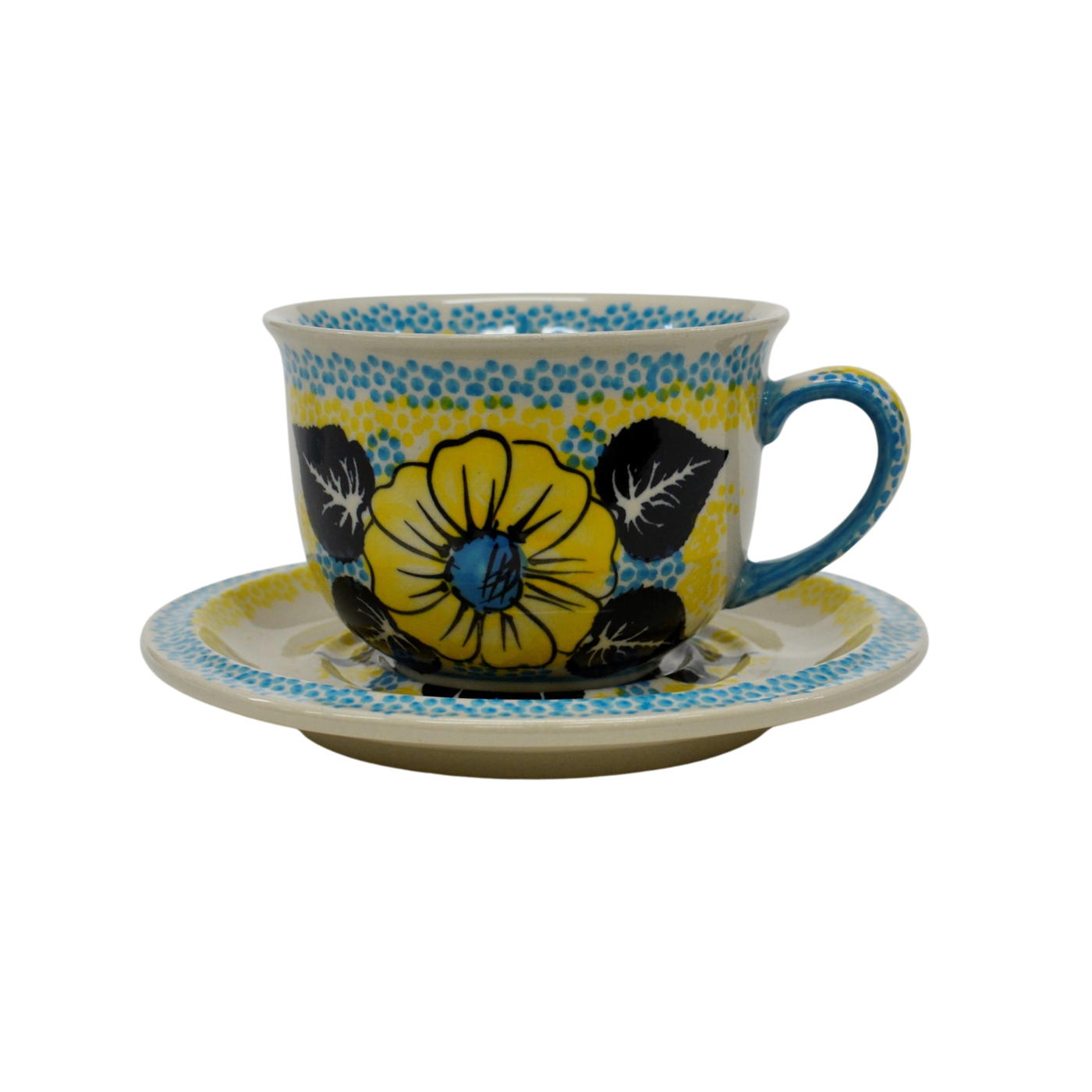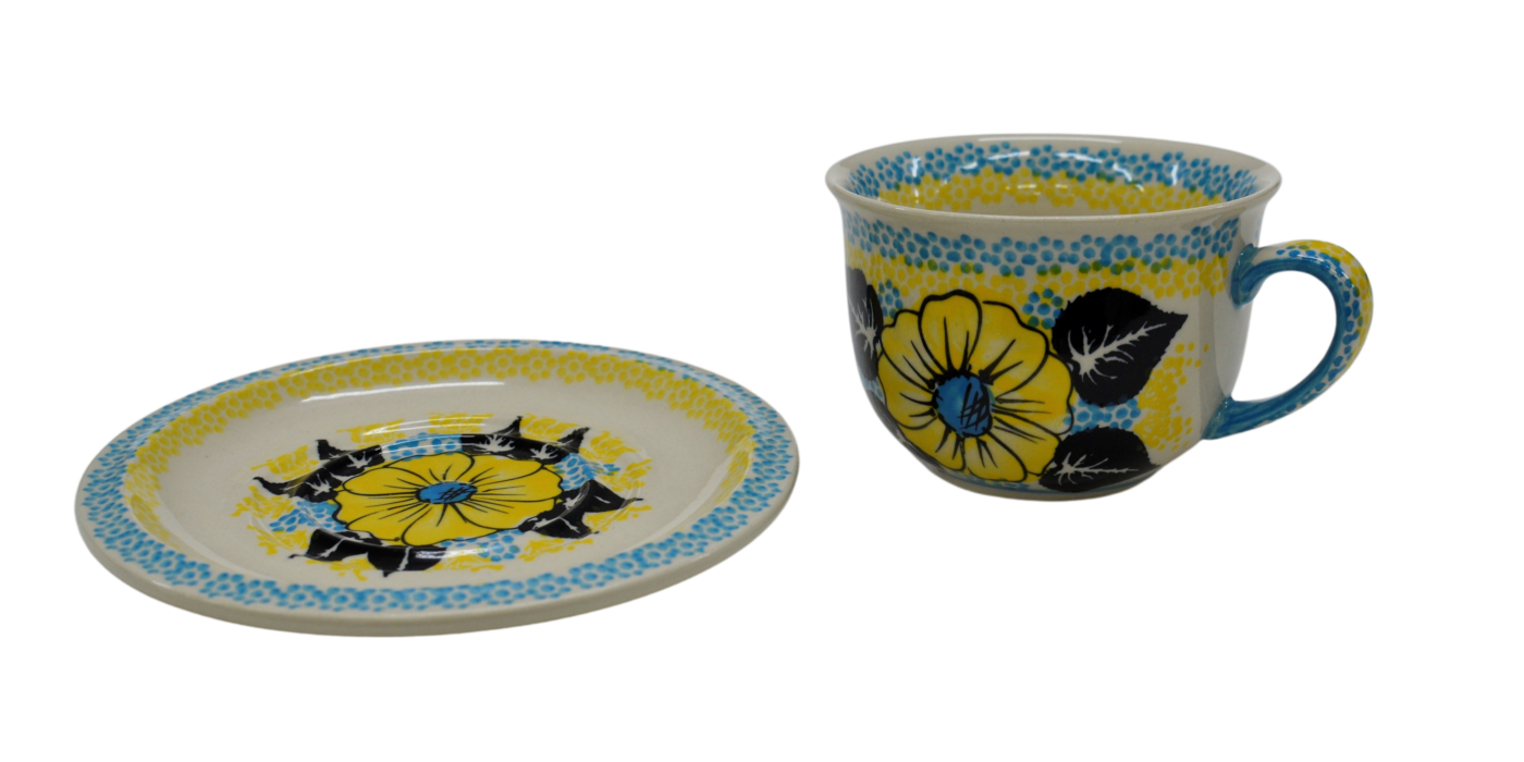 A beautiful ceramic cup with a capacity of 0.3 l sold in a set with a saucer, decorated ceramic cup with beautiful patterns of Bolesławiec stoneware.