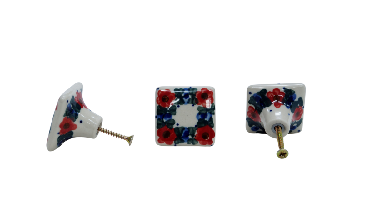 Original product of Bolesławiec ceramics - square drawer knob, furniture handles, hand-painted in the family owned factory of the original Bolesławiec stoneware, ANDY CERAMIKA.