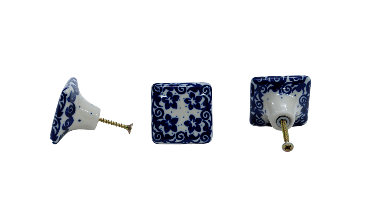 Original product of Bolesławiec ceramics - square drawer knob, furniture handles, hand-painted in the family owned factory of the original Bolesławiec stoneware, ANDY CERAMIKA.