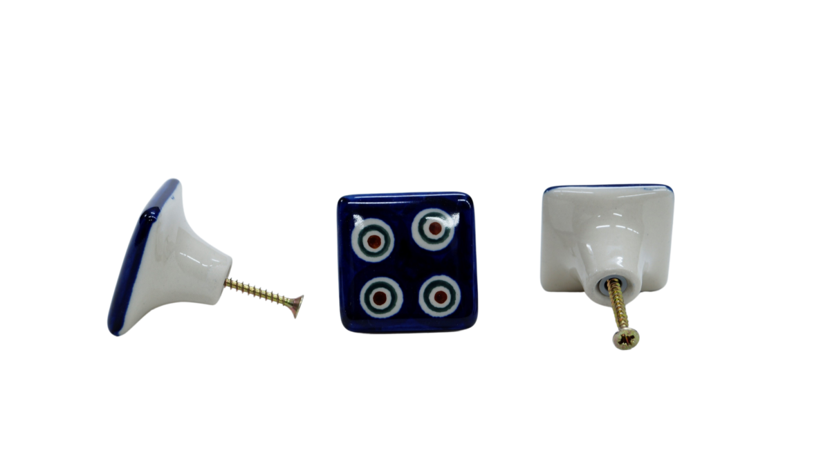 Original product of Bolesławiec ceramics - square drawer knob, furniture handles, hand-painted in the family owned factory of the original Bolesławiec stoneware, ANDY CERAMIKA.