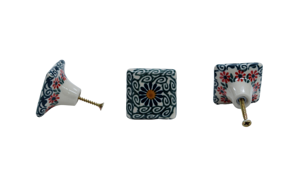 Original product of Bolesławiec ceramics - square drawer knob, furniture handles, hand-painted in the family owned factory of the original Bolesławiec stoneware, ANDY CERAMIKA.