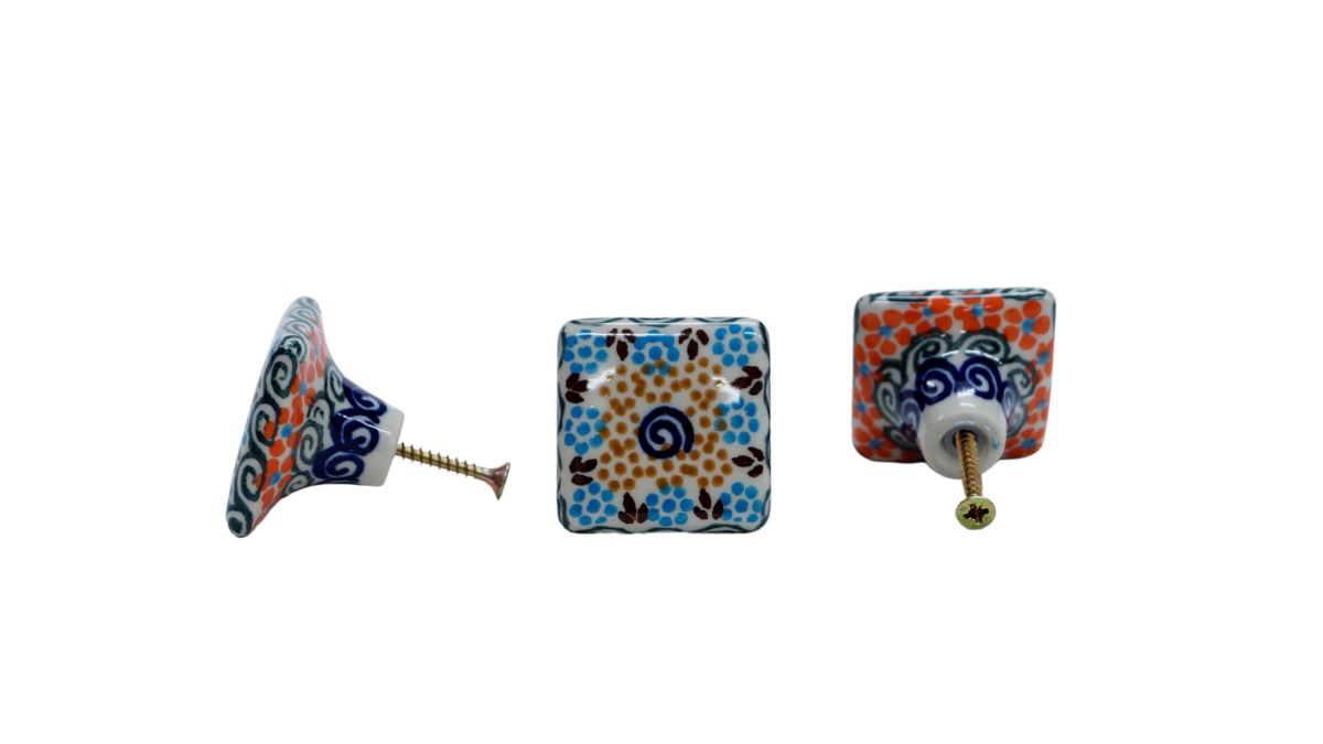 Original product of Bolesławiec ceramics - square drawer knob, furniture handles, hand-painted in the family owned factory of the original Bolesławiec stoneware, ANDY CERAMIKA.