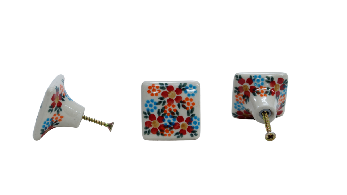 Original product of Bolesławiec ceramics - square drawer knob, furniture handles, hand-painted in the family owned factory of the original Bolesławiec stoneware, ANDY CERAMIKA.