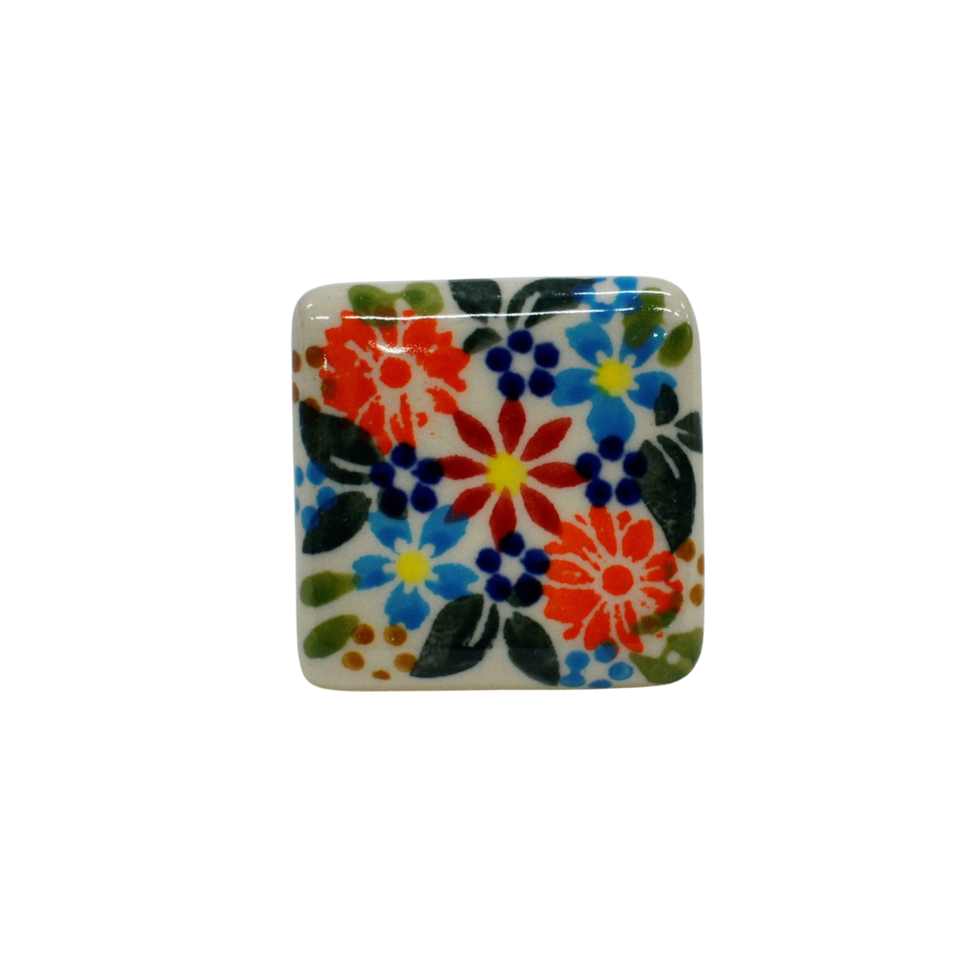 Original product of Bolesławiec ceramics - square drawer knob, furniture handles, hand-painted in the family owned factory of the original Bolesławiec stoneware, ANDY CERAMIKA.
