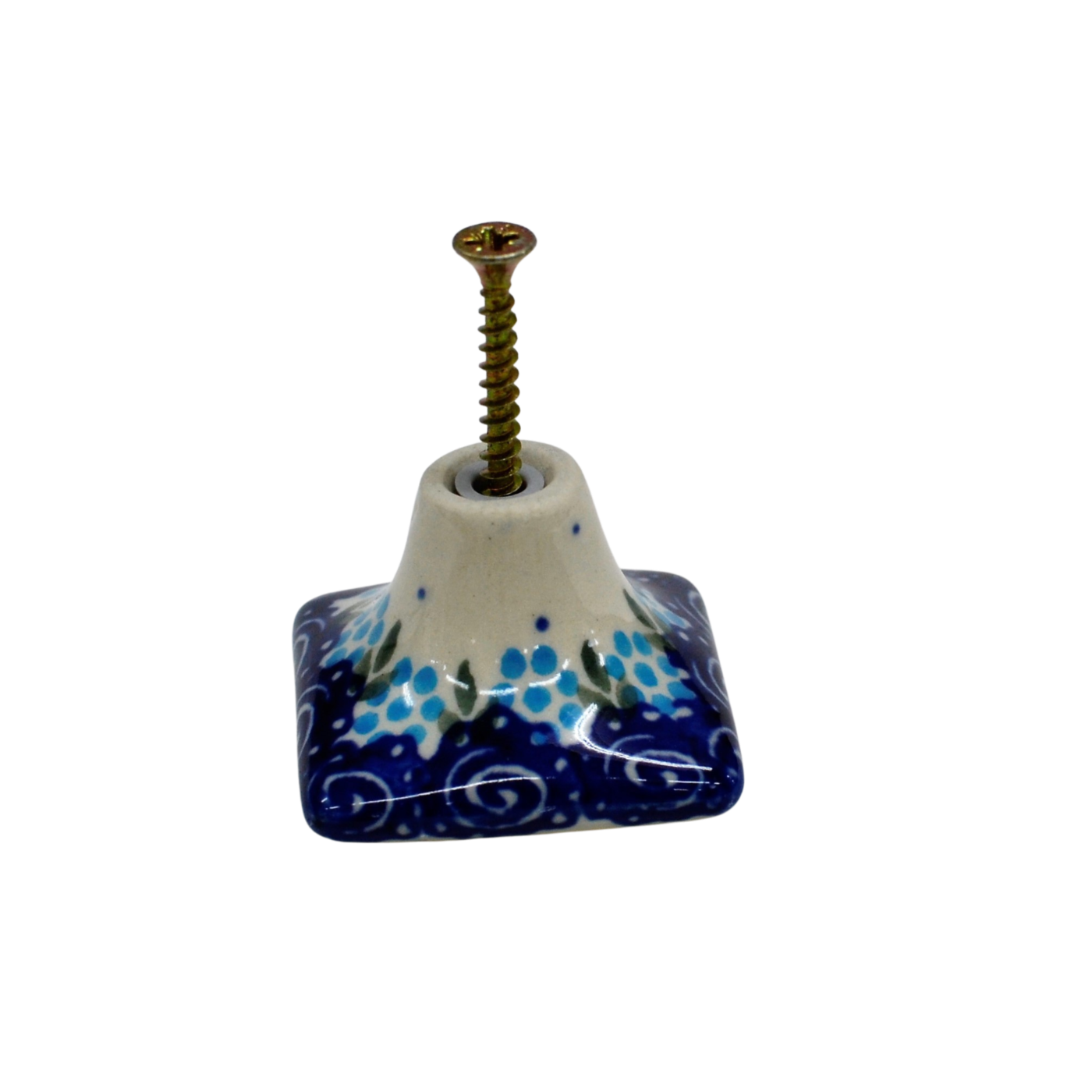 Original product of Bolesławiec ceramics - square drawer knob, furniture handles, hand-painted in the family owned factory of the original Bolesławiec stoneware, ANDY CERAMIKA.