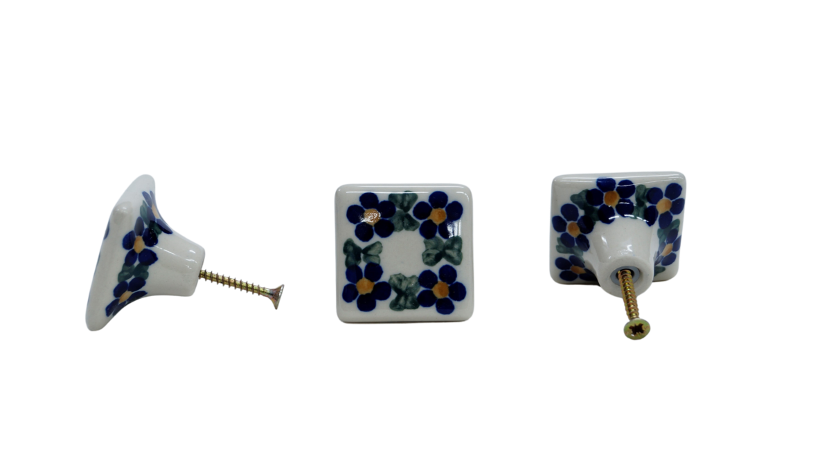 Original product of Bolesławiec ceramics - square drawer knob, furniture handles, hand-painted in the family owned factory of the original Bolesławiec stoneware, ANDY CERAMIKA.