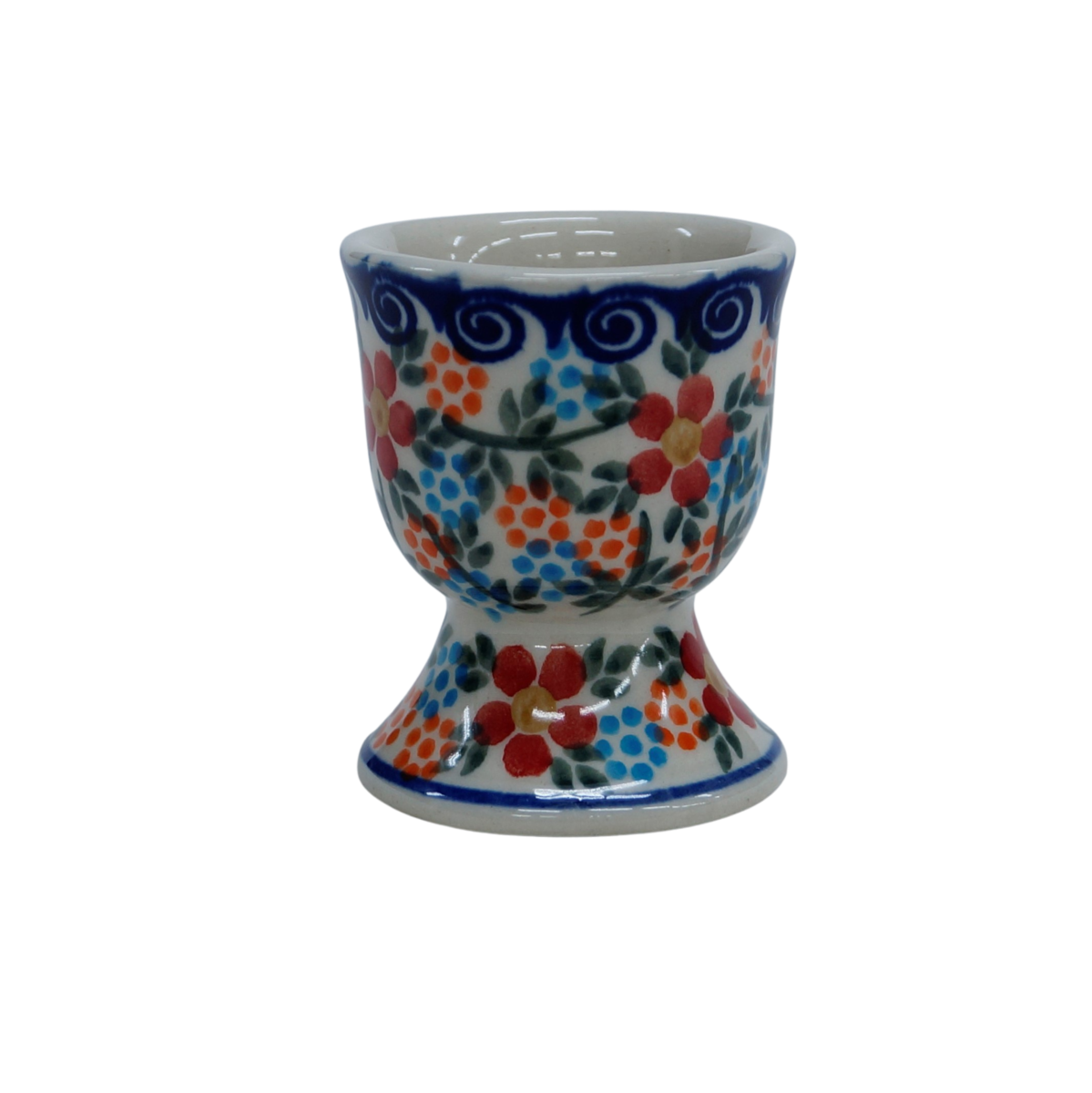 The egg cup for adults and children is a basic and very practical ceramic dish for serving a soft-boiled egg. A hard-boiled, half-soft or very soft-boiled egg is served in a ceramic, hand-painted in Bolesławiec, a beautiful egg cup on a subtle foot.