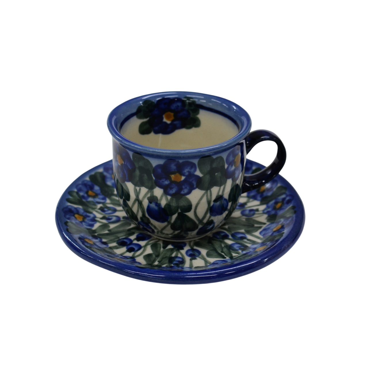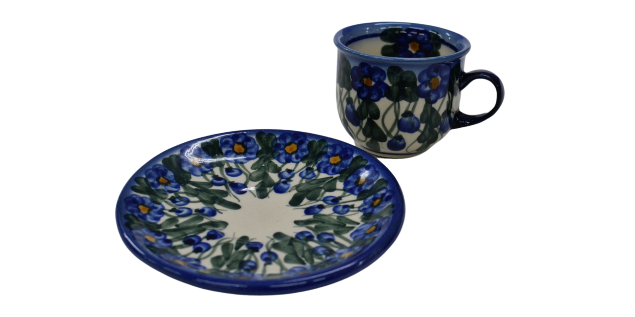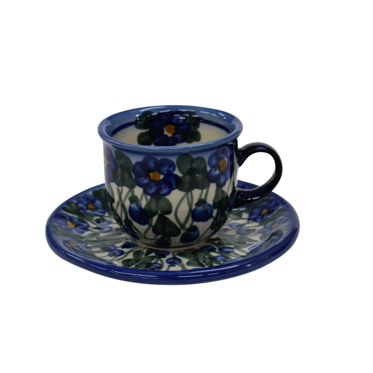 A beautiful ceramic cup with a saucer, Espresso cup with a capacity of 100 ml, produced in an artistic ceramics factory in Bolesławiec.