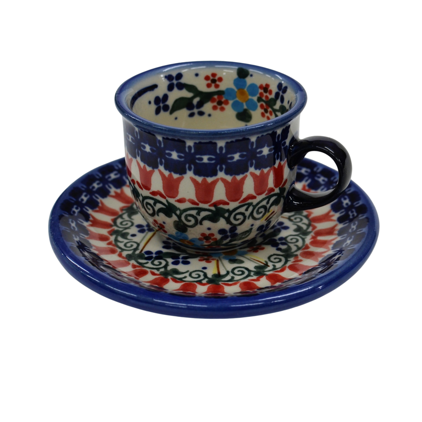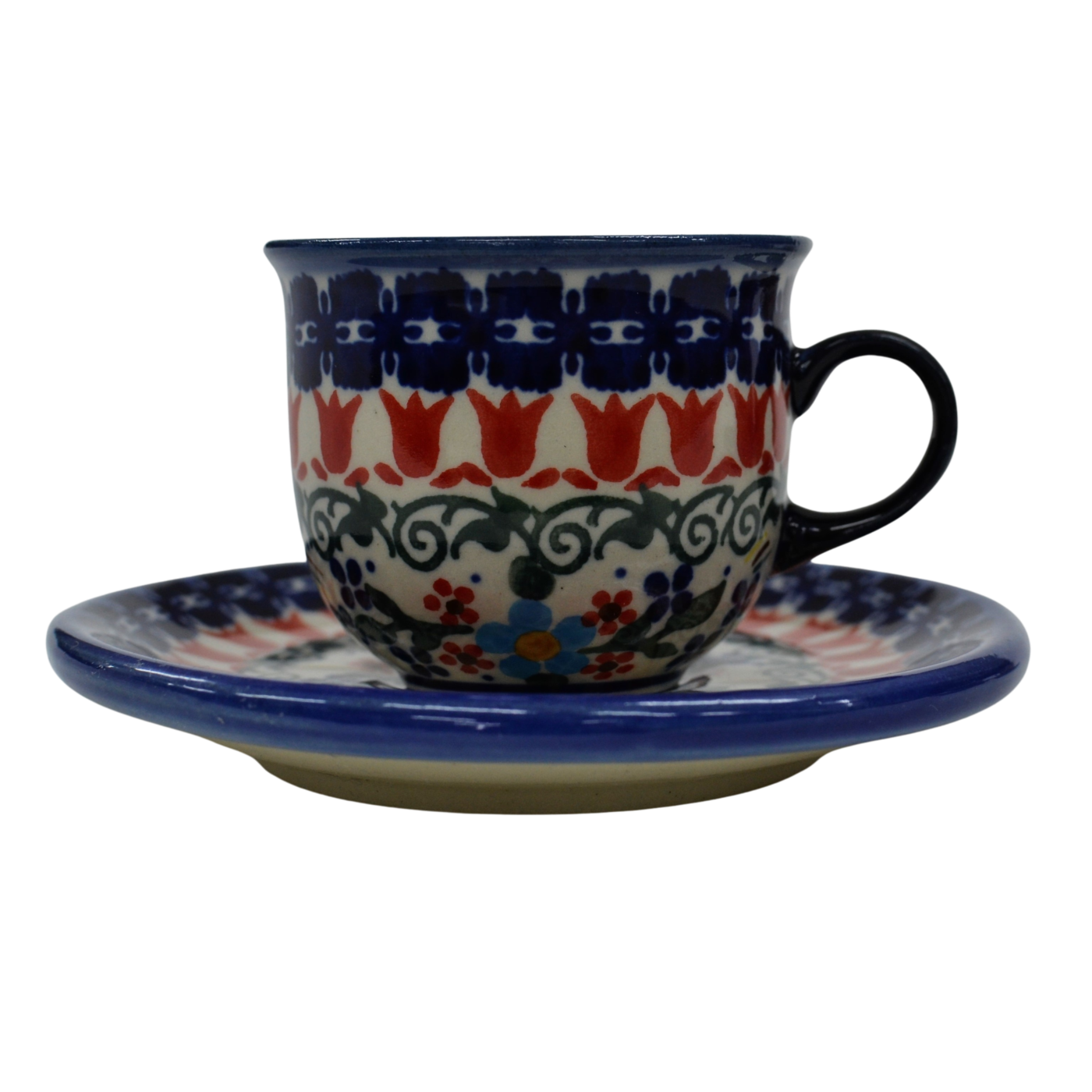 A beautiful ceramic cup with a saucer, Espresso cup with a capacity of 100 ml, produced in an artistic ceramics factory in Bolesławiec.