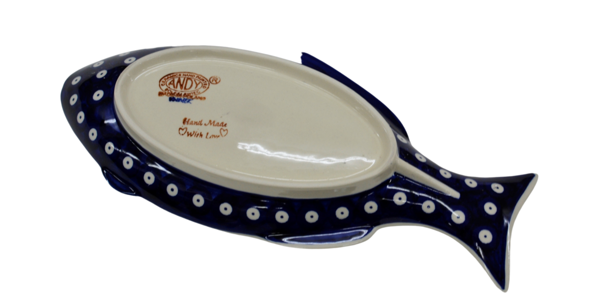 Ceramic fish (platter), which covers the high-quality glaze, is suitable for use in ovens, microwaves and dishwashers. All our dishes from Bolesławiec are suitable for contact with food and are free from heavy metals.