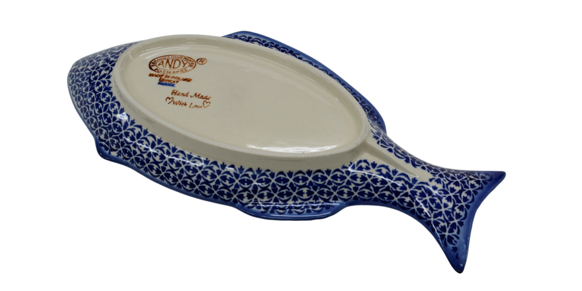 Ceramic fish (platter), which covers the high-quality glaze, is suitable for use in ovens, microwaves and dishwashers. All our dishes from Bolesławiec are suitable for contact with food and are free from heavy metals.