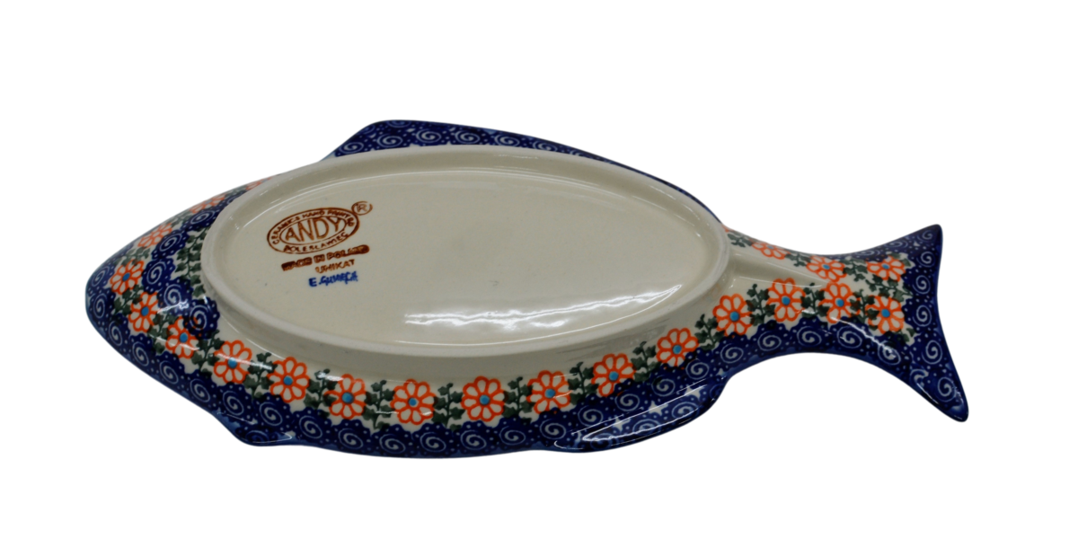 Ceramic fish (platter), which covers the high-quality glaze, is suitable for use in ovens, microwaves and dishwashers. All our dishes from Bolesławiec are suitable for contact with food and are free from heavy metals.