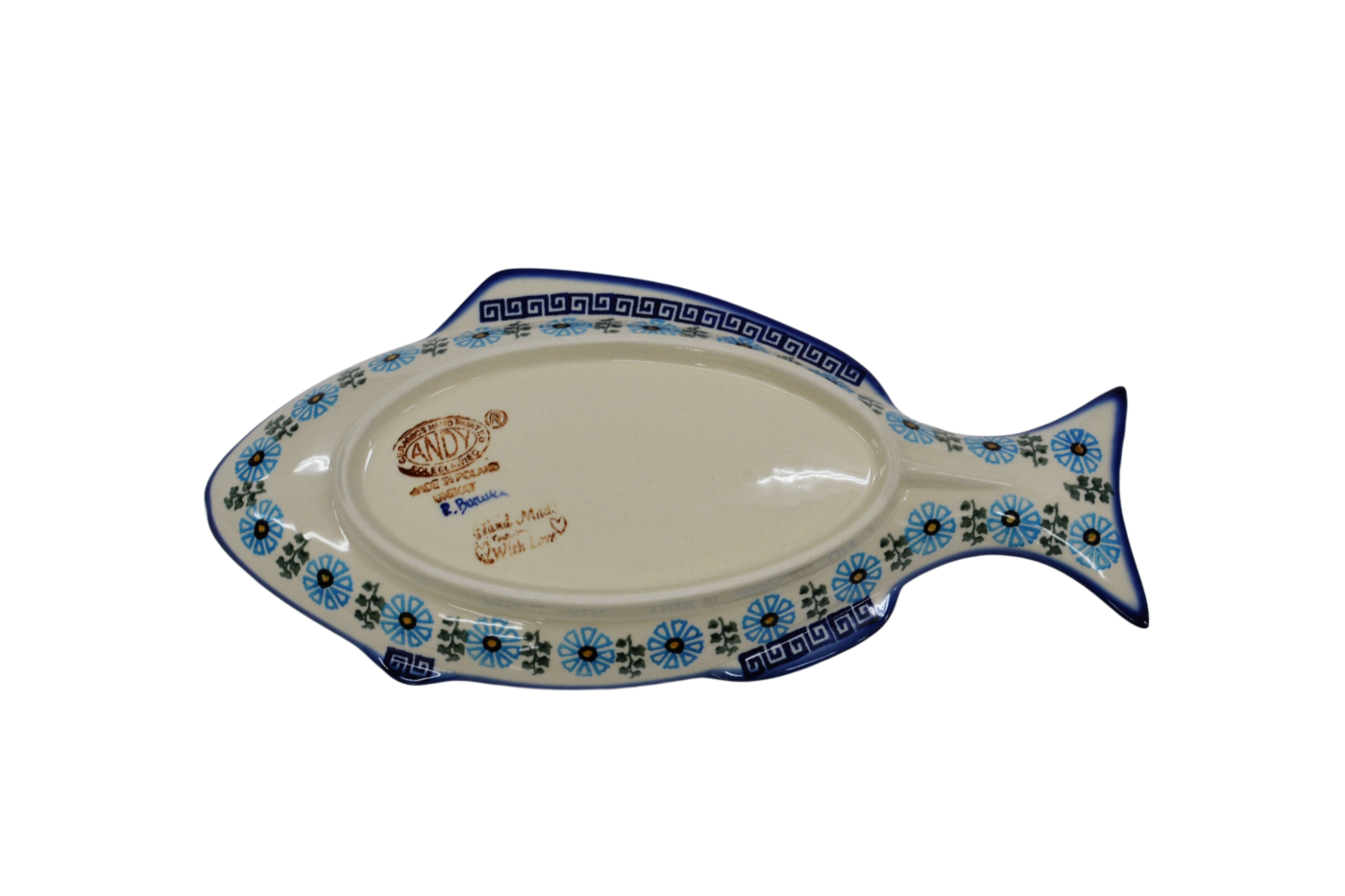 Ceramic fish (platter), which covers the high-quality glaze, is suitable for use in ovens, microwaves and dishwashers. All our dishes from Bolesławiec are suitable for contact with food and are free from heavy metals.