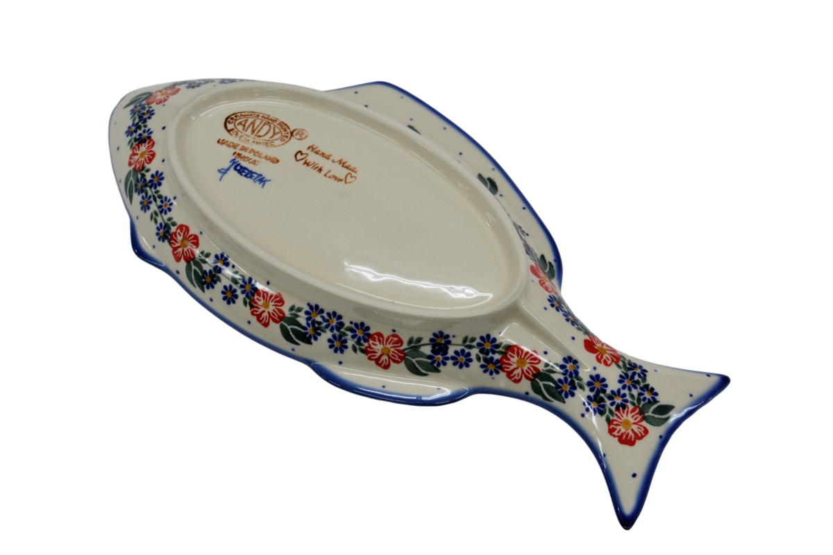 Ceramic fish (platter), which covers the high-quality glaze, is suitable for use in ovens, microwaves and dishwashers. All our dishes from Bolesławiec are suitable for contact with food and are free from heavy metals.