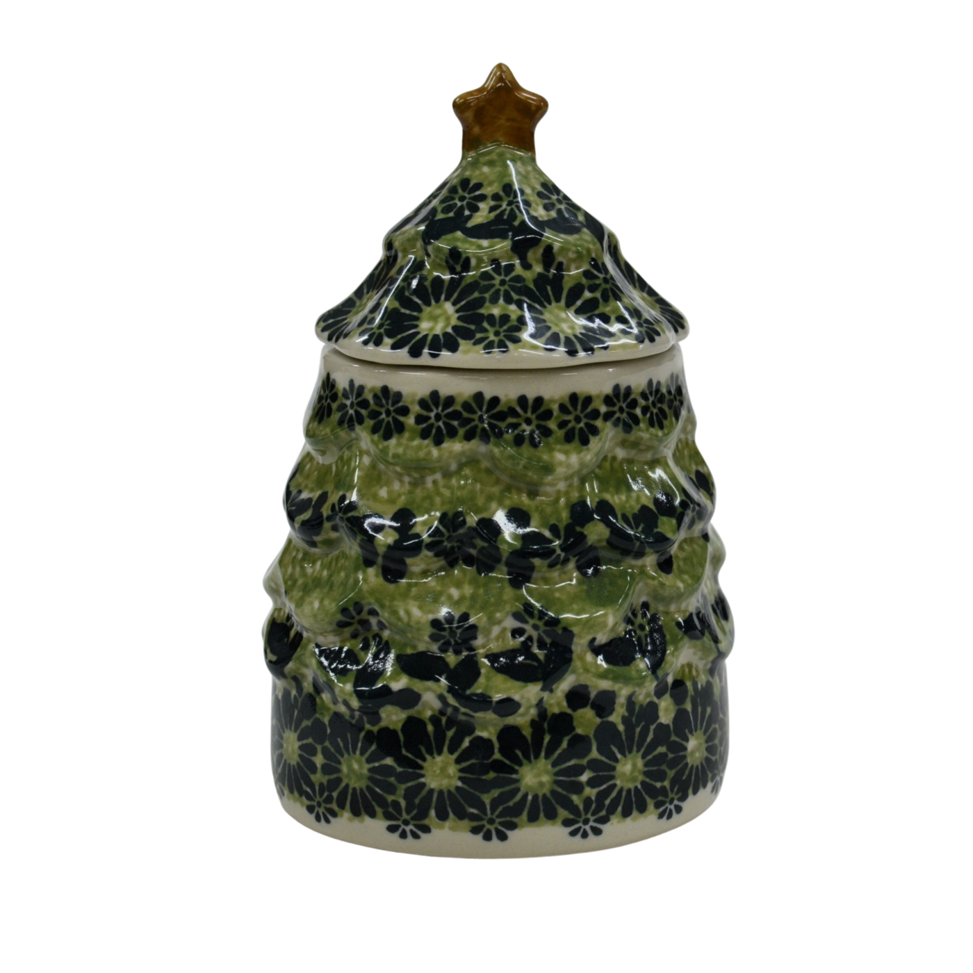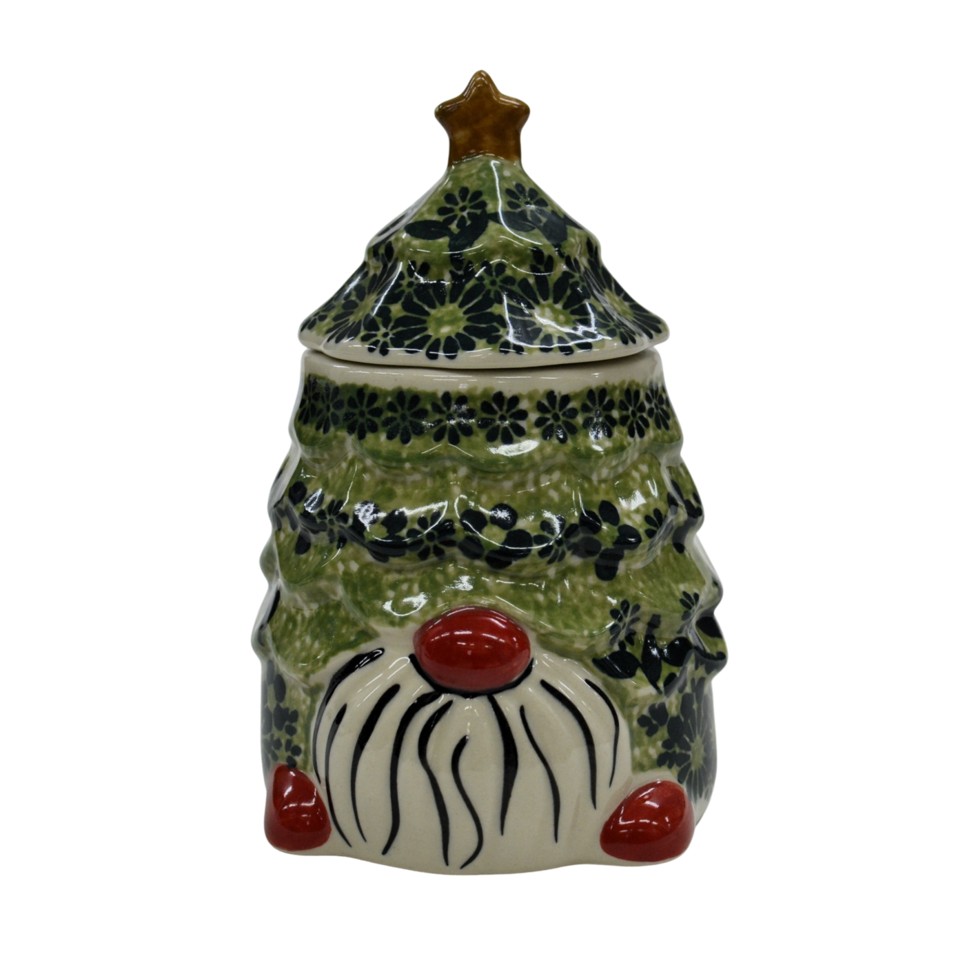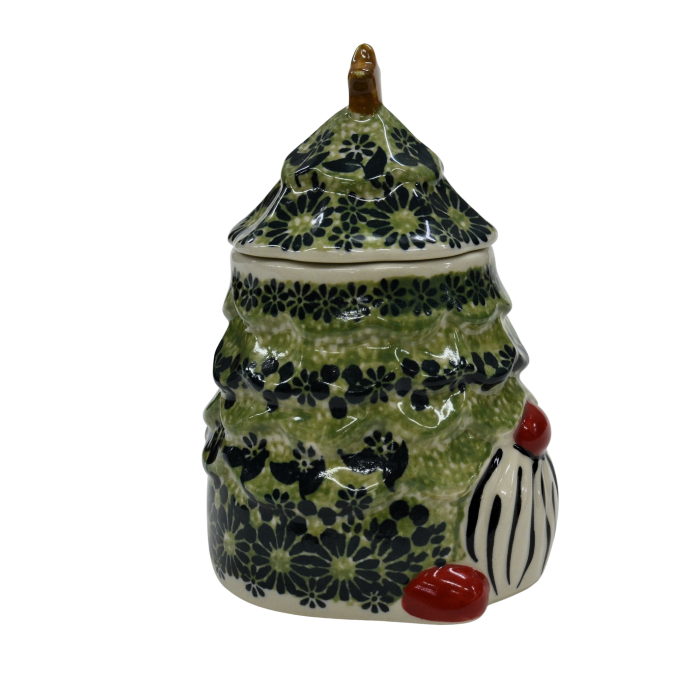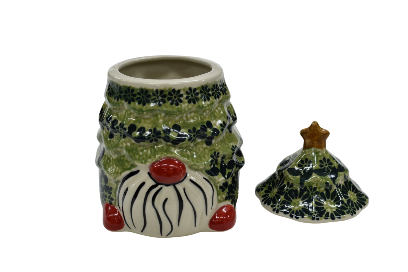 We present a real work of art straight from the Bolesławiec pottery factory. Ceramic container Gnome Christmas tree with a lid.