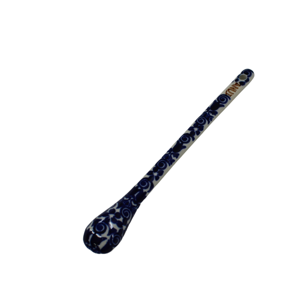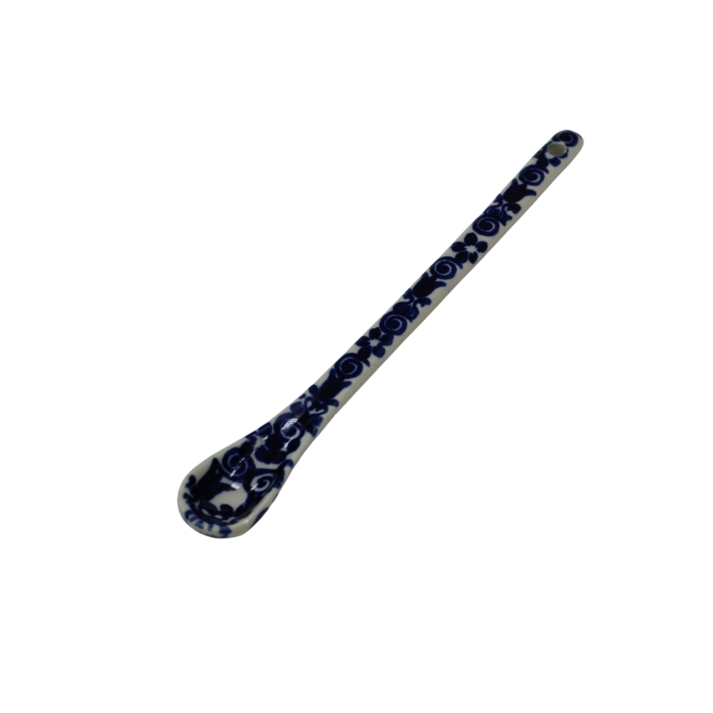 A long ceramic spoon for coffee and desserts (19.5 cm long) is one of the basic and necessary elements of kitchen equipment, hand-painted with unique flower and stamp decorations, manufactured in the artistic ceramics workshop in Bolesławiec.