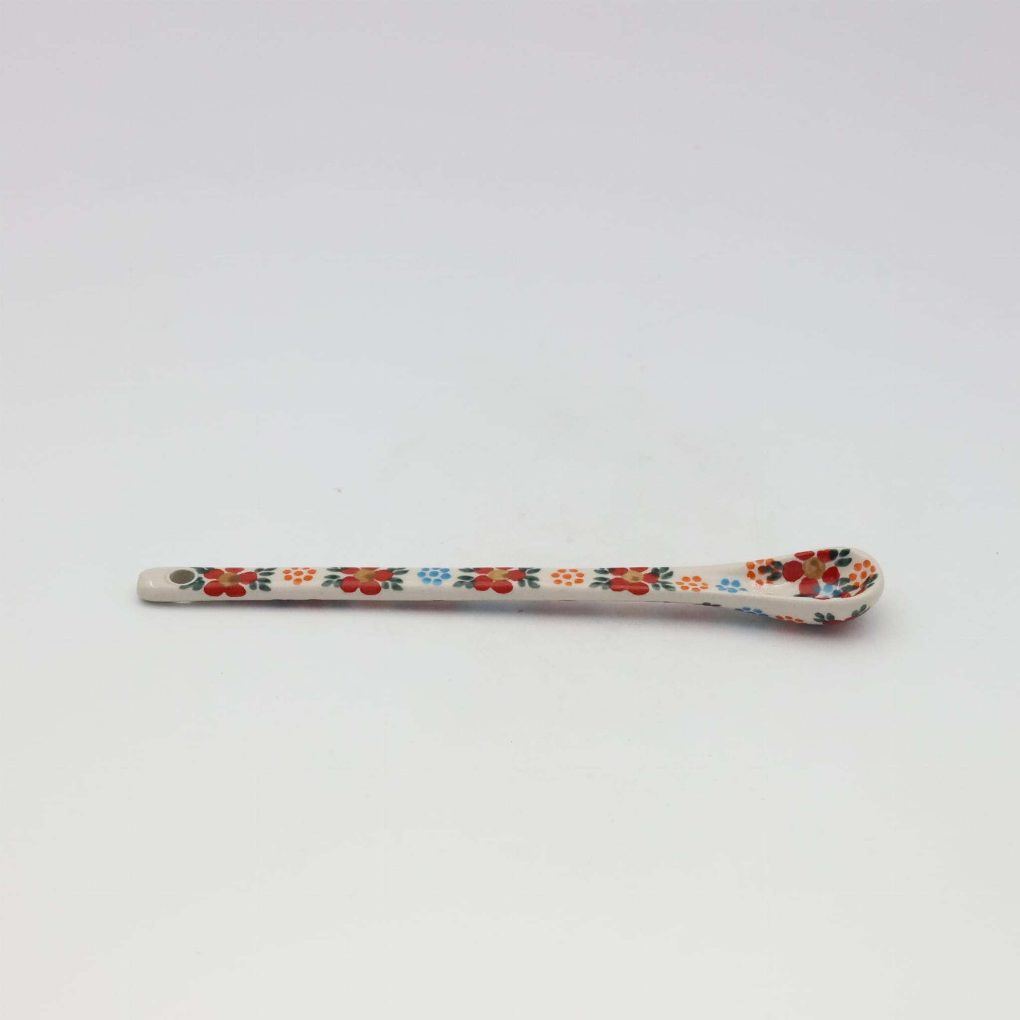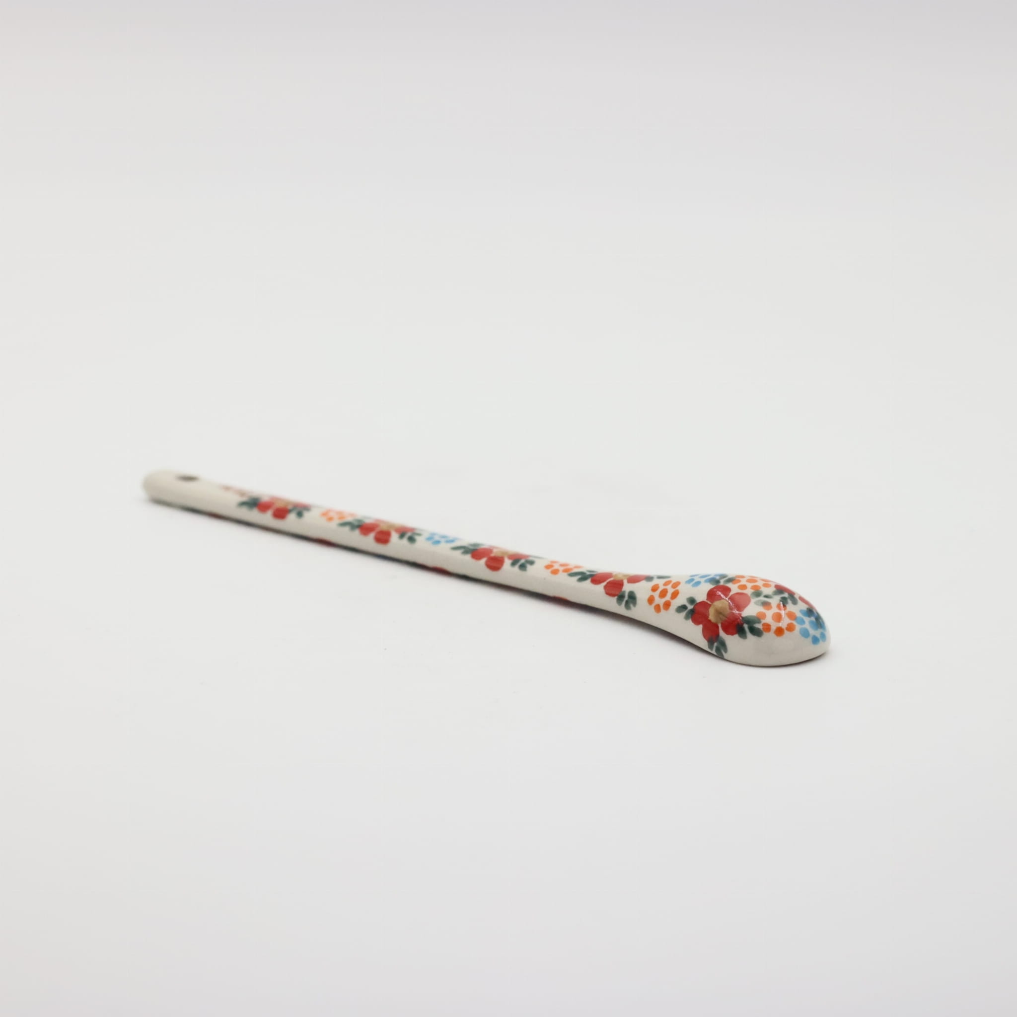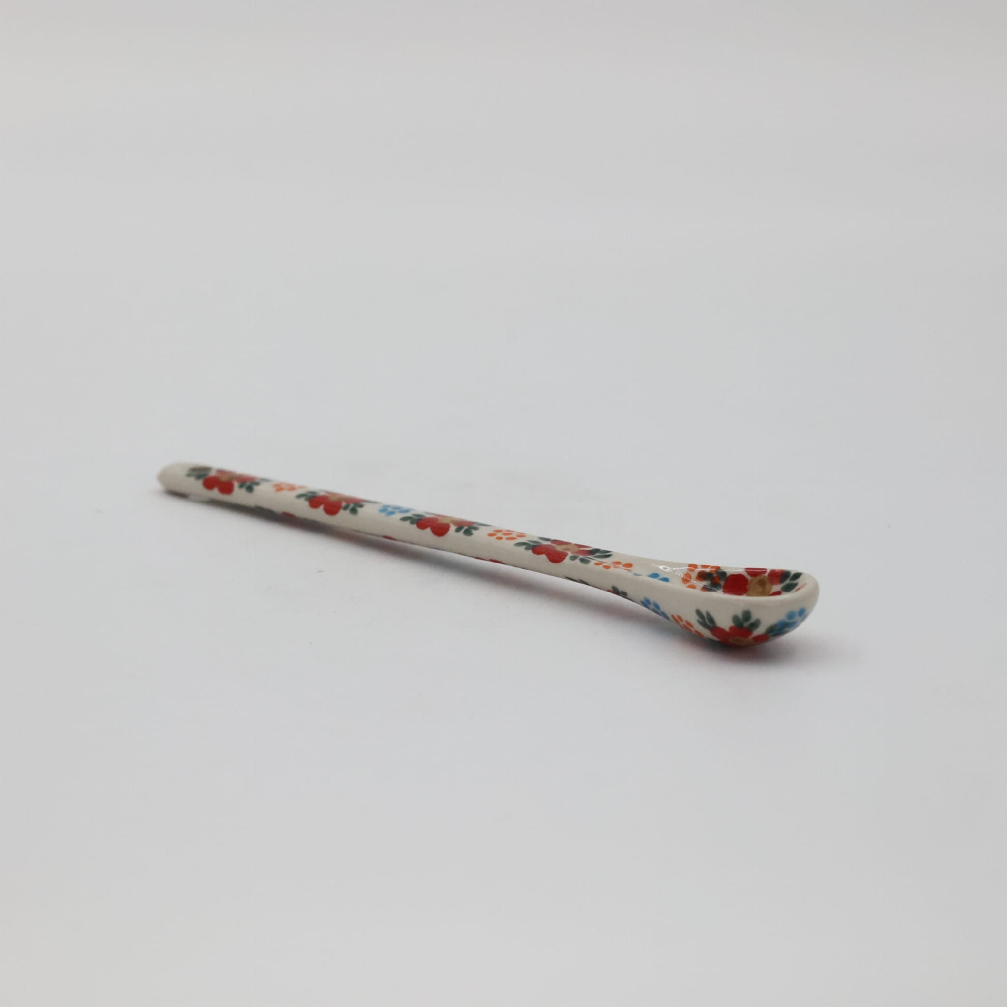 A long ceramic spoon for coffee and desserts (19.5 cm long) is one of the basic and necessary elements of kitchen equipment, hand-painted with unique flower and stamp decorations, manufactured in the artistic ceramics workshop in Bolesławiec.