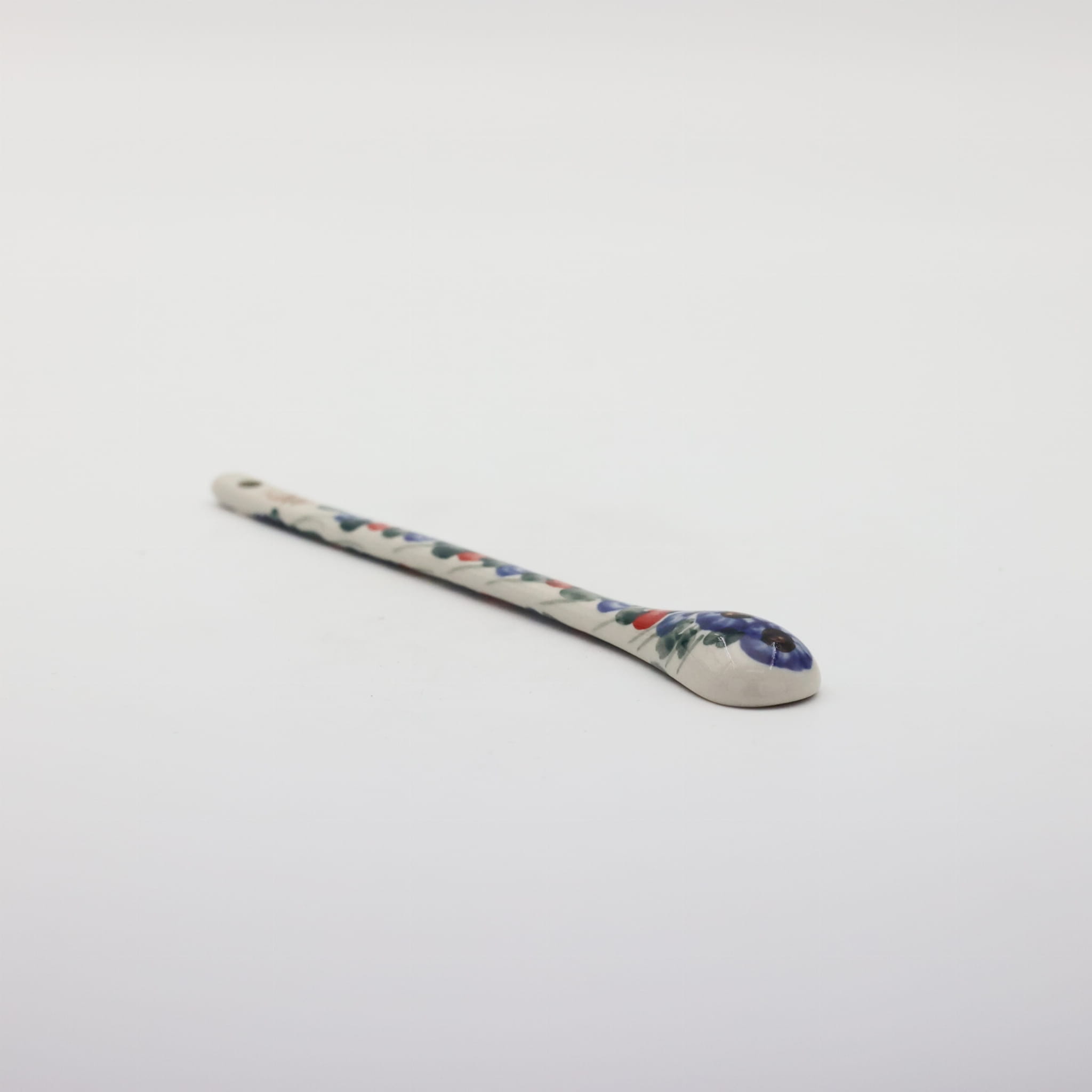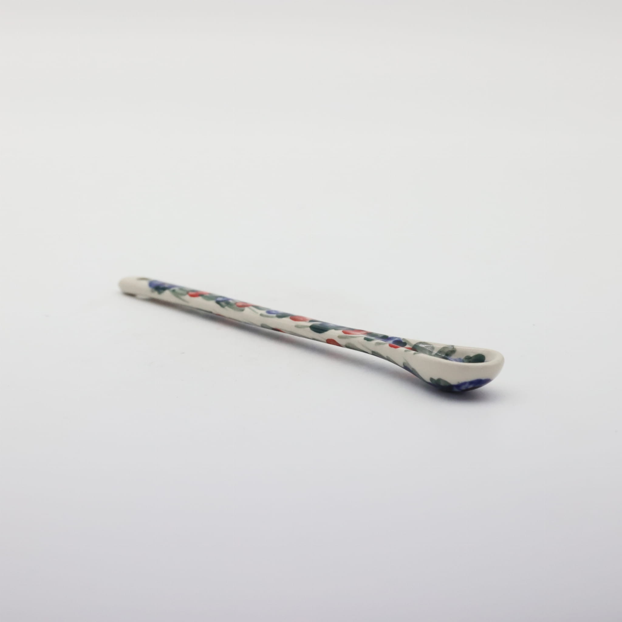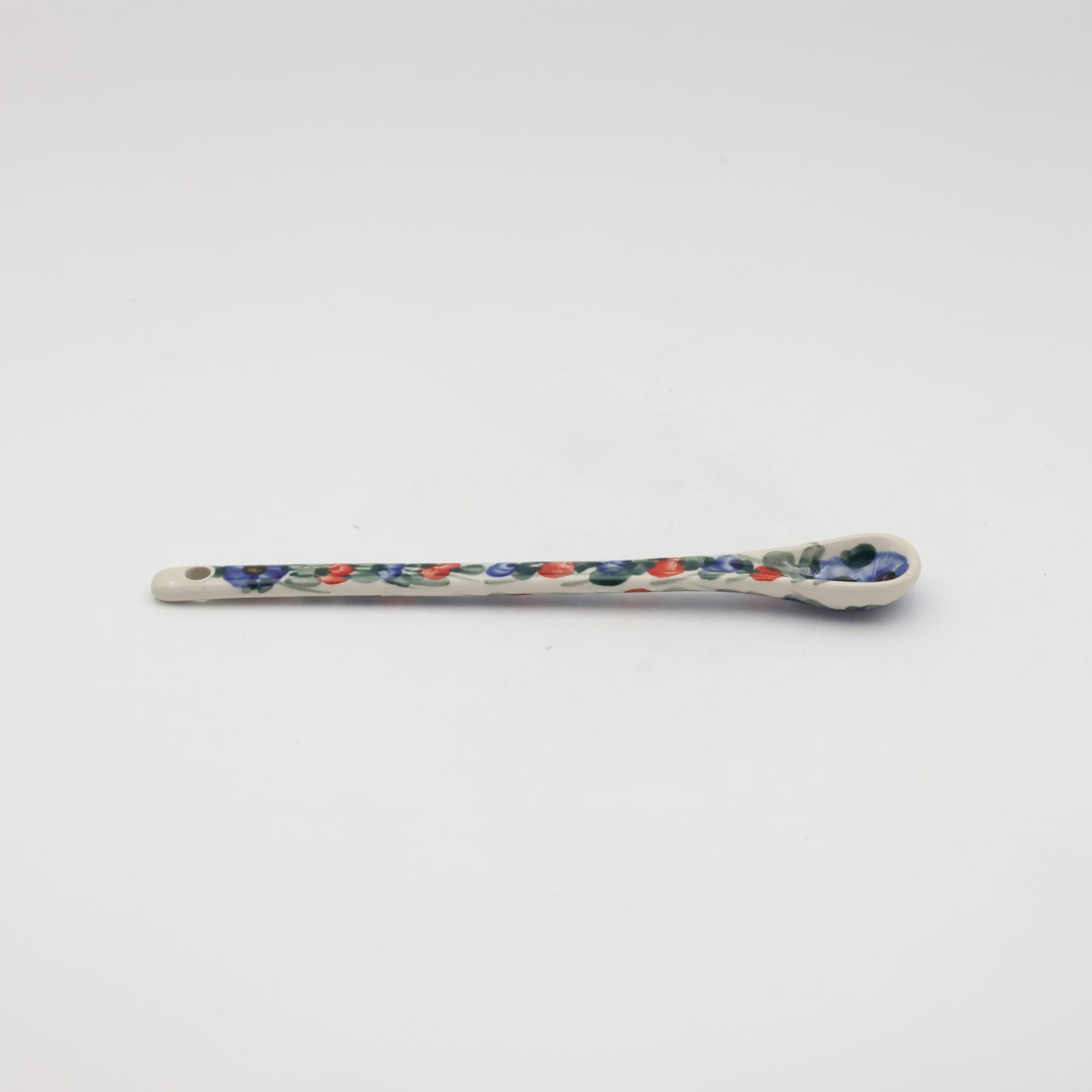 A long ceramic spoon for coffee and desserts (19.5 cm long) is one of the basic and necessary elements of kitchen equipment, hand-painted with unique flower and stamp decorations, manufactured in the artistic ceramics workshop in Bolesławiec.