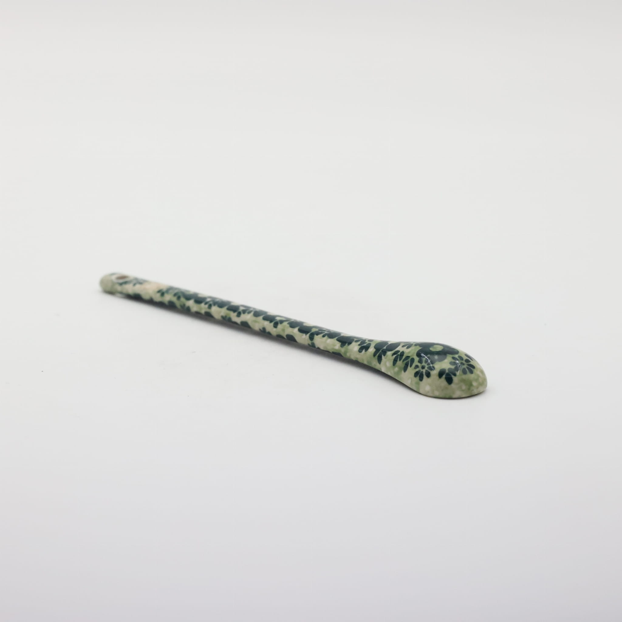 A long ceramic spoon for coffee and desserts (19.5 cm long) is one of the basic and necessary elements of kitchen equipment, hand-painted with unique flower and stamp decorations, manufactured in the artistic ceramics workshop in Bolesławiec.