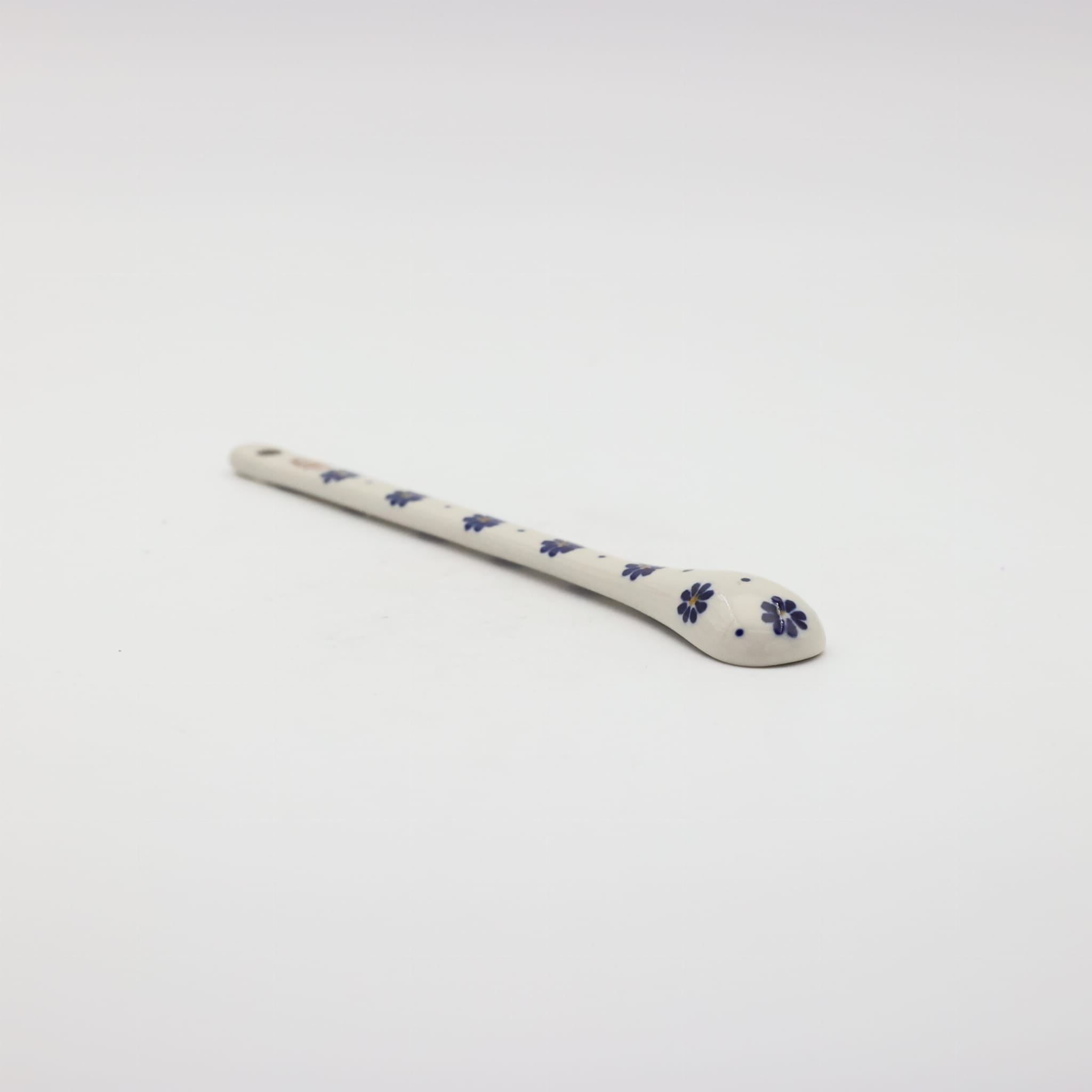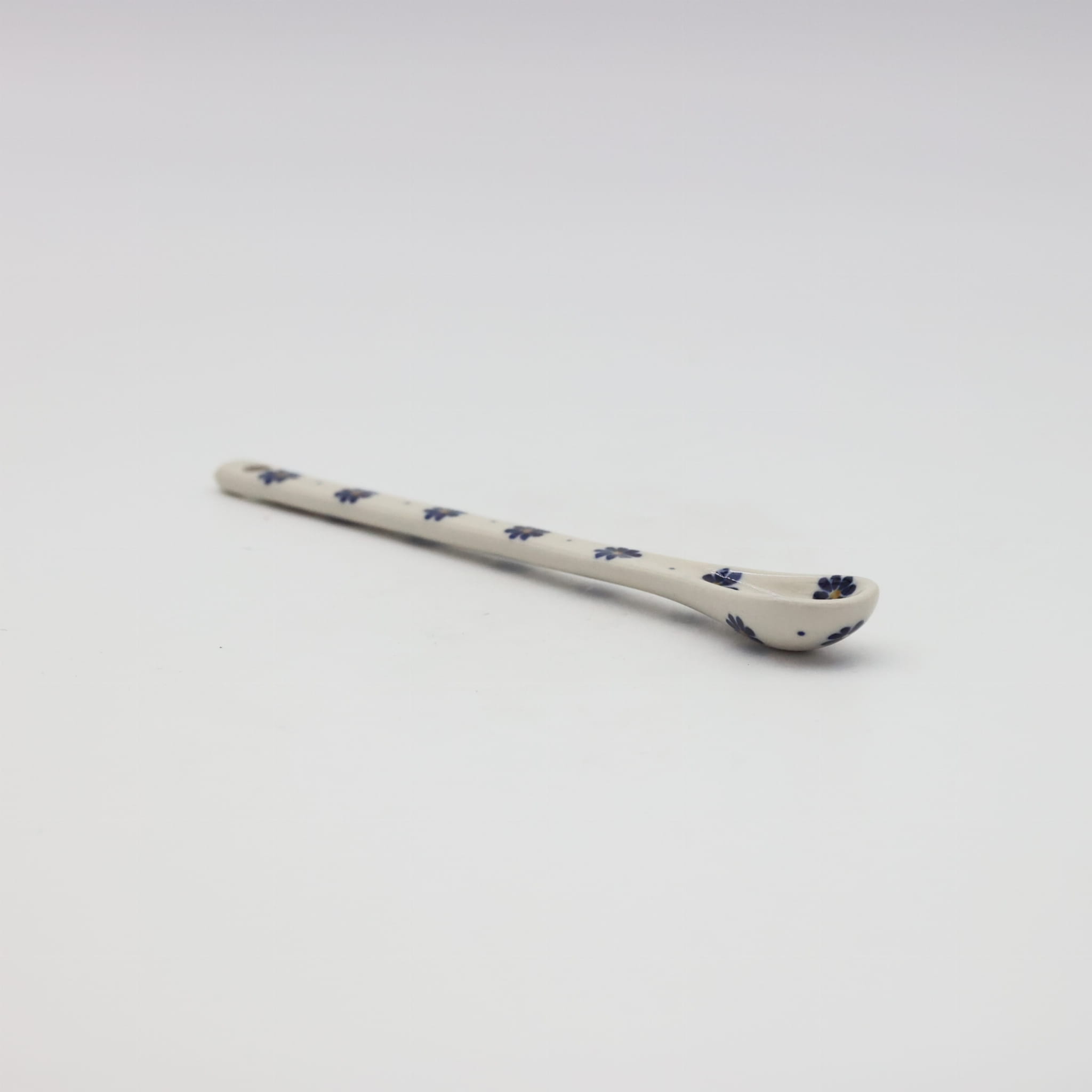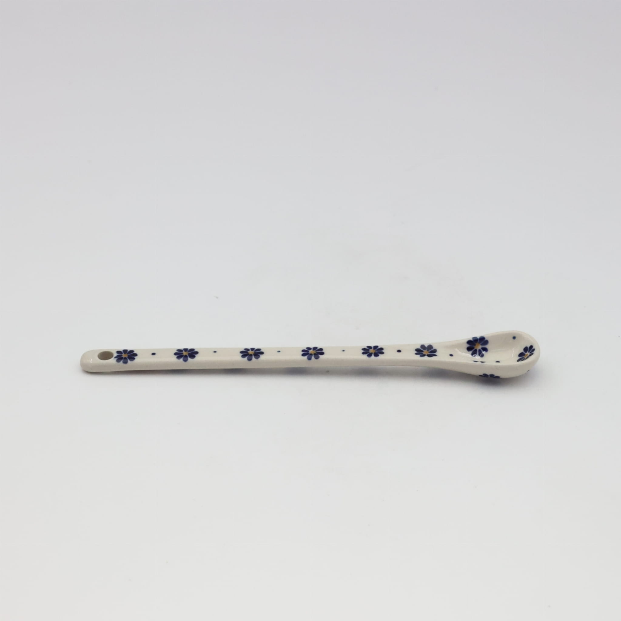 A long ceramic spoon for coffee and desserts (19.5 cm long) is one of the basic and necessary elements of kitchen equipment, hand-painted with unique flower and stamp decorations, manufactured in the artistic ceramics workshop in Bolesławiec.