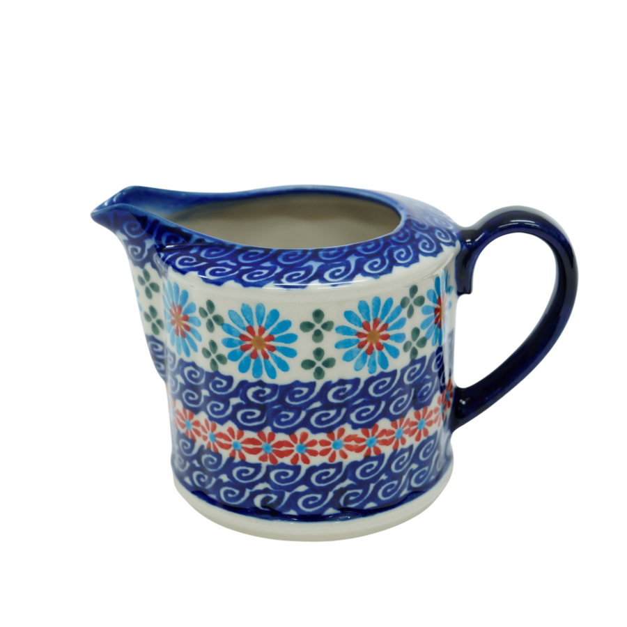 The original shape of the milk jug has a characteristic line that is combined with the remaining series of shapes of ceramic products such as sugar bowls, sugar bowls, milk jugs, bottles, containers, bowls, bowls, vases, and many other products needed to create the entire dinner set or set coffee, produced in Bolesławiec.