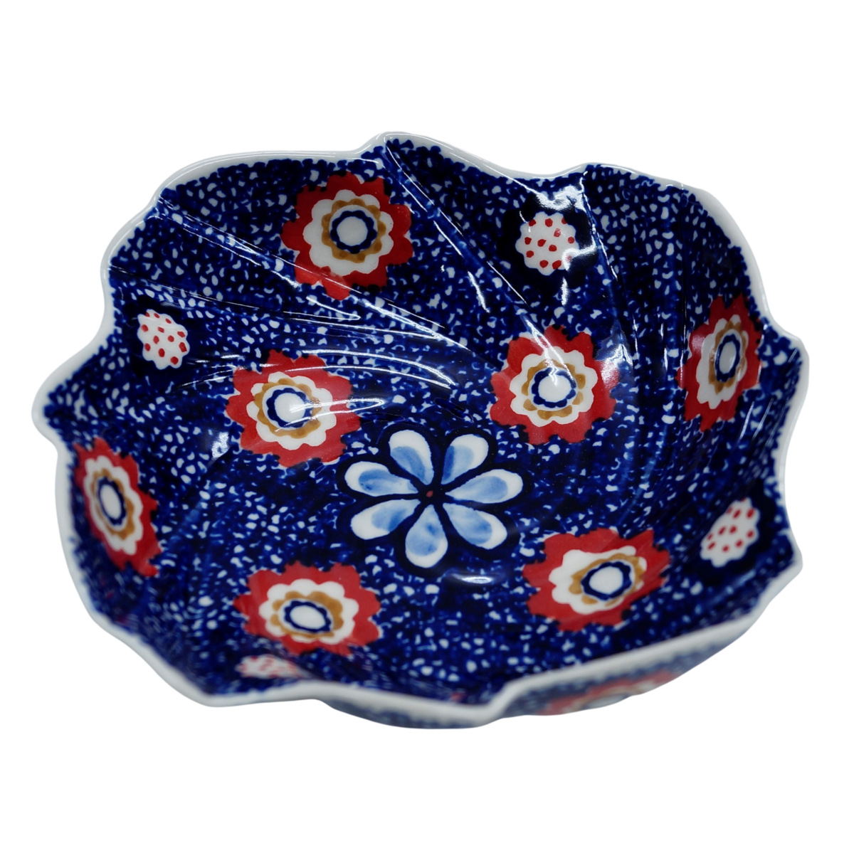 The original product of Bolesławiec ceramics - a small curly bowl. Traditional Polish pottery from Bolesławiec fits perfectly into any decor, in every dining room and kitchen, and on every feast table. Occasional parties such as name days, birthdays, wedding anniversaries, communions or weddings are events that we remember for a long time. The solemnity of many ceremonies is highlighted by ceramic vessels, those from Bolesławiec, hand-decorated and made with the tradition and history of handicrafts.