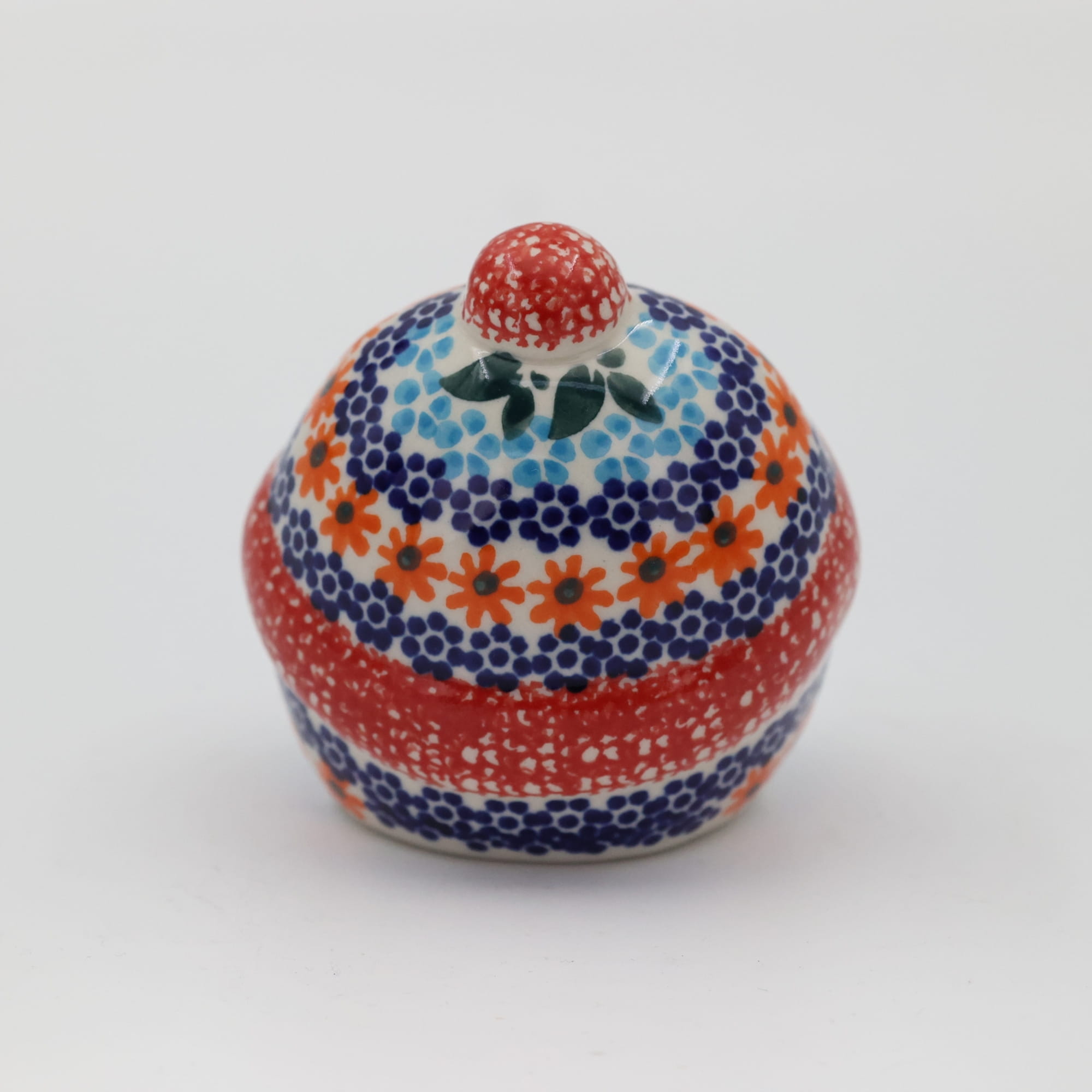 This ceramic snowman with a cap, crafted from Bolesławiec pottery, is a charming decorative piece that brings warmth and joy to any interior. Made by hand from high-quality Bolesławiec ceramics, it combines traditional craftsmanship with unique artistic expression. The hand-painted patterns, characteristic of Bolesławiec pottery, give it a distinctive regional flair, making each snowman a one-of-a-kind work of art. The meticulous attention to detail in its decoration adds both beauty and individuality to your home.