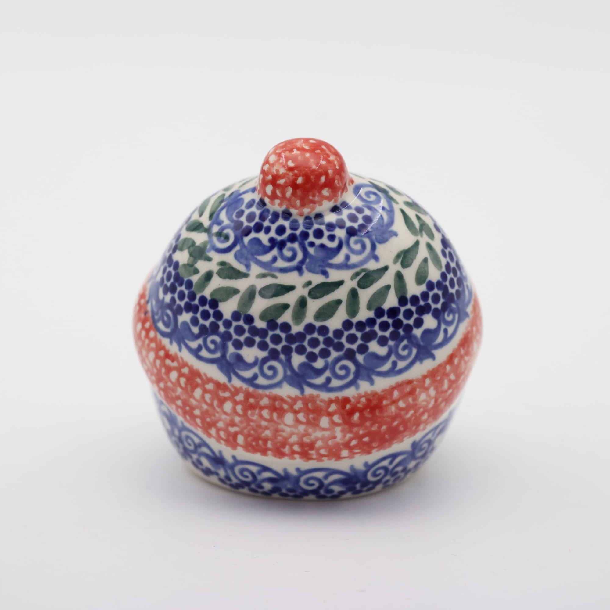 This ceramic snowman with a cap, crafted from Bolesławiec pottery, is a charming decorative piece that brings warmth and joy to any interior. Made by hand from high-quality Bolesławiec ceramics, it combines traditional craftsmanship with unique artistic expression. The hand-painted patterns, characteristic of Bolesławiec pottery, give it a distinctive regional flair, making each snowman a one-of-a-kind work of art. The meticulous attention to detail in its decoration adds both beauty and individuality to your home.