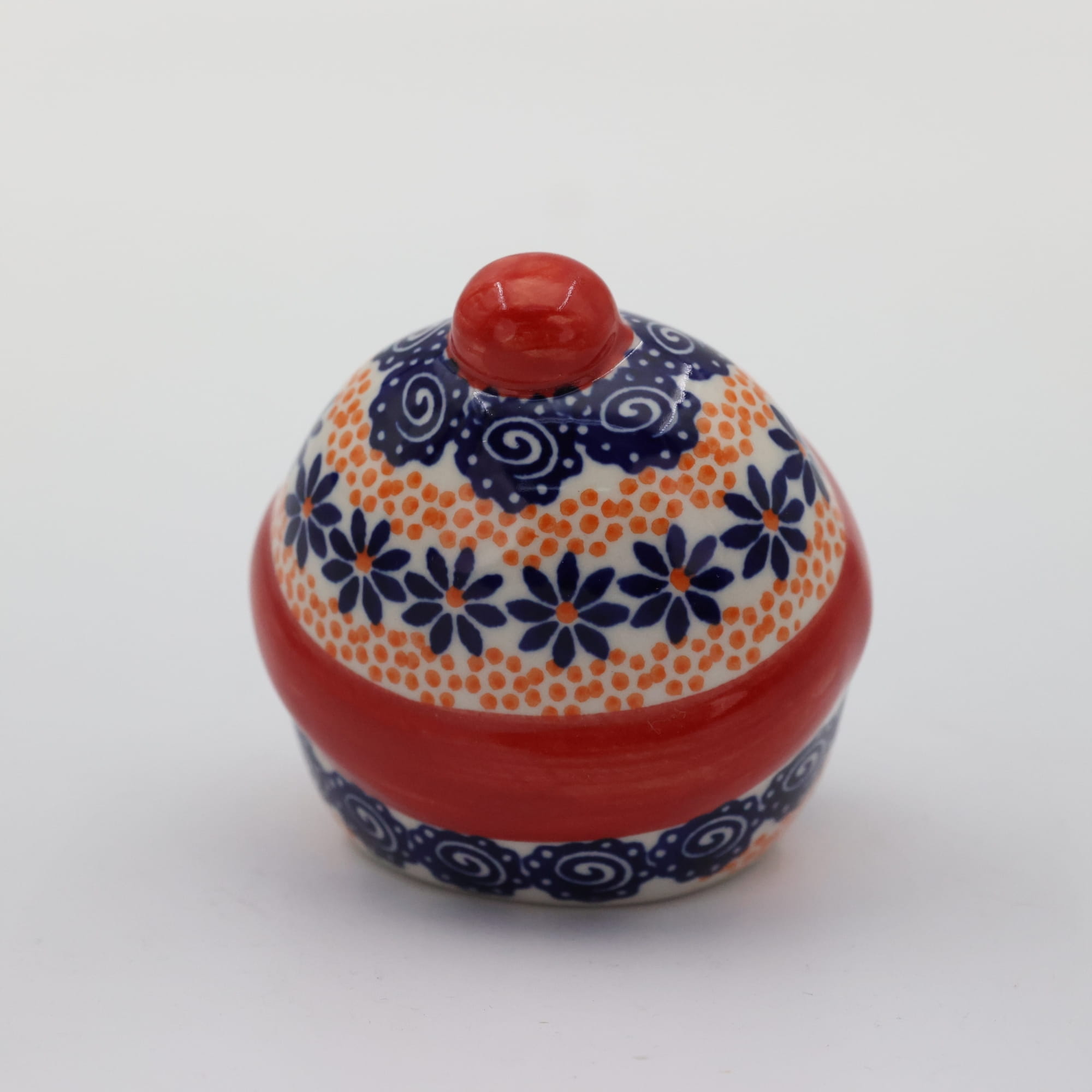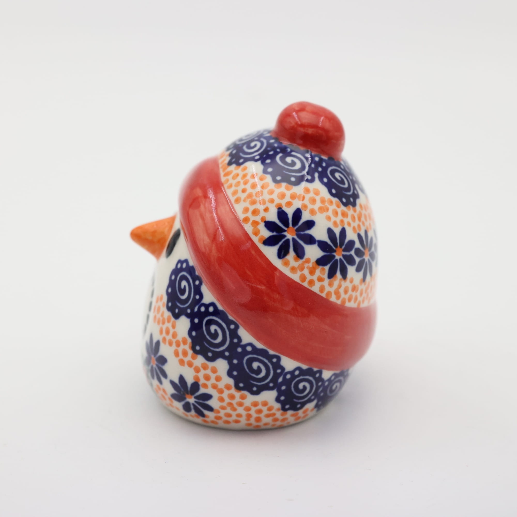 This ceramic snowman with a cap, crafted from Bolesławiec pottery, is a charming decorative piece that brings warmth and joy to any interior. Made by hand from high-quality Bolesławiec ceramics, it combines traditional craftsmanship with unique artistic expression. The hand-painted patterns, characteristic of Bolesławiec pottery, give it a distinctive regional flair, making each snowman a one-of-a-kind work of art. The meticulous attention to detail in its decoration adds both beauty and individuality to your home.